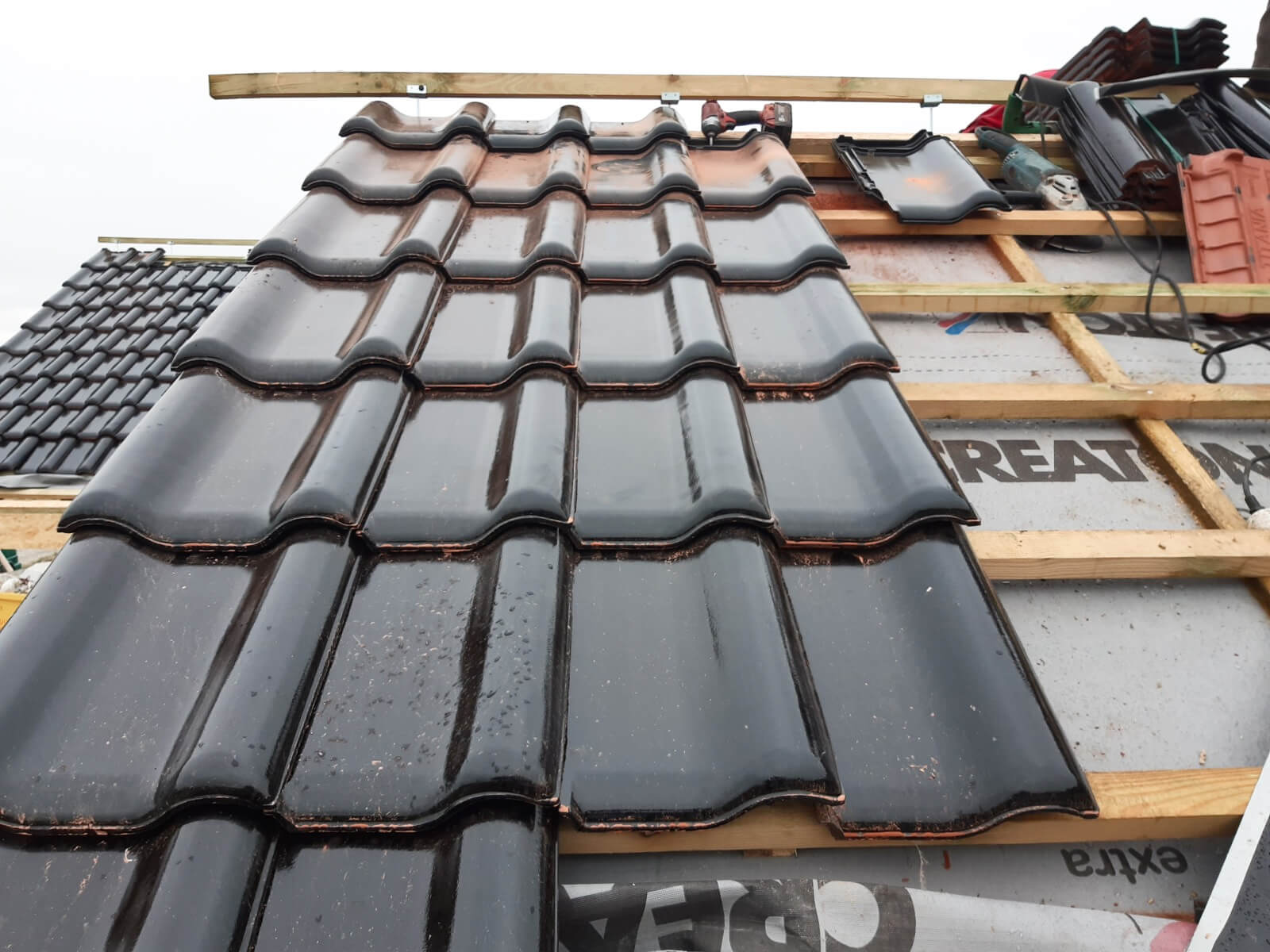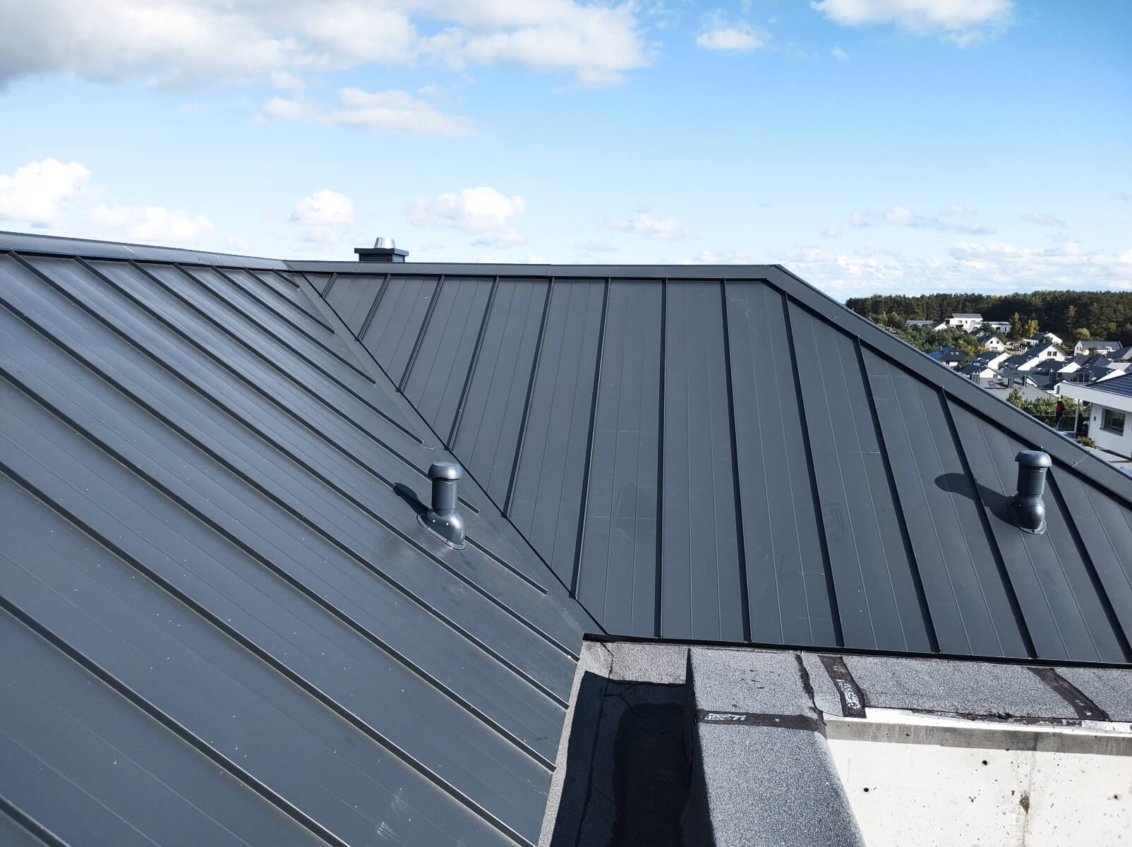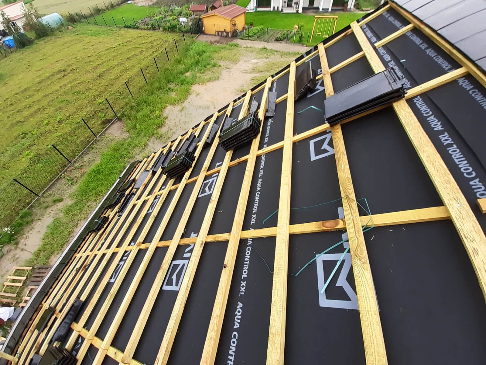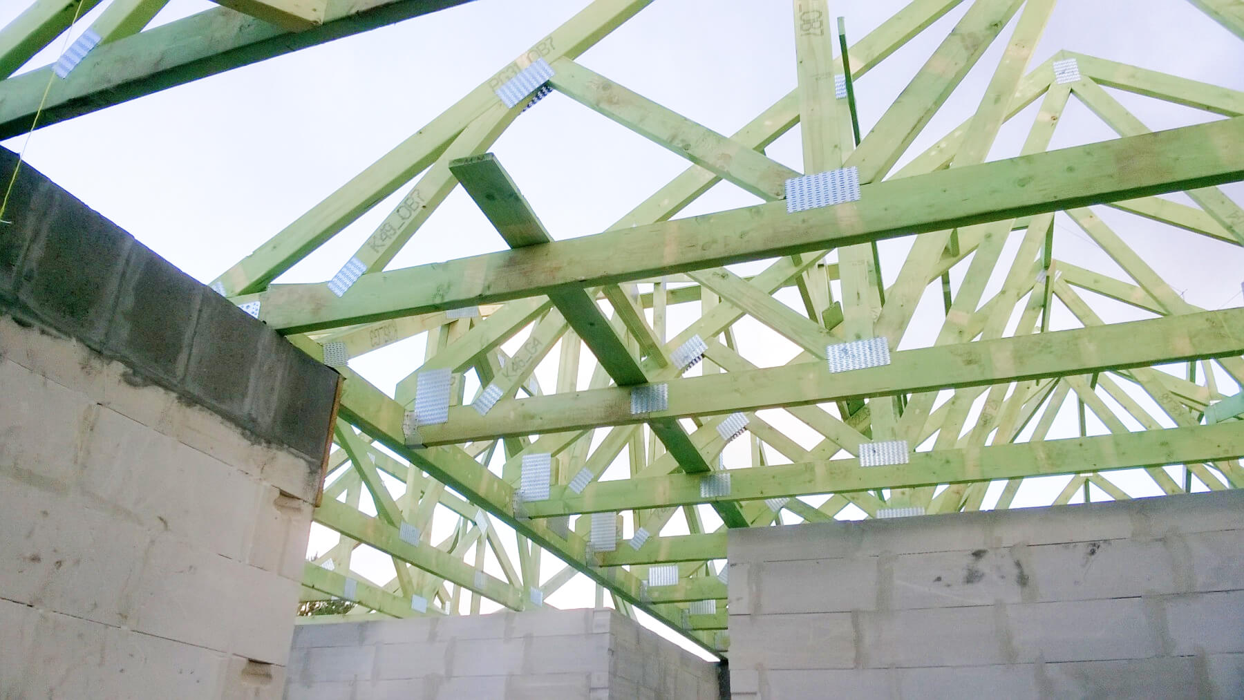 Drewno iglaste klasy C24, suszone, strugane, impregnowane lub tarcica tradycyjna – w zależności od wybranej opcji. Pokrycie dachu: paroizolacja, łaty, kontrłaty, dachówka betonowa falista, ... więcejblacha na rąbek lub blachodachówka – w zależności od wybranej opcji. Docieplenie dachu: wełna mineralna o parametrach zgodnych z WT2021 lub natrysk piany PUR o grubości minimum 25 cm – w zależności od wybranej opcji.
