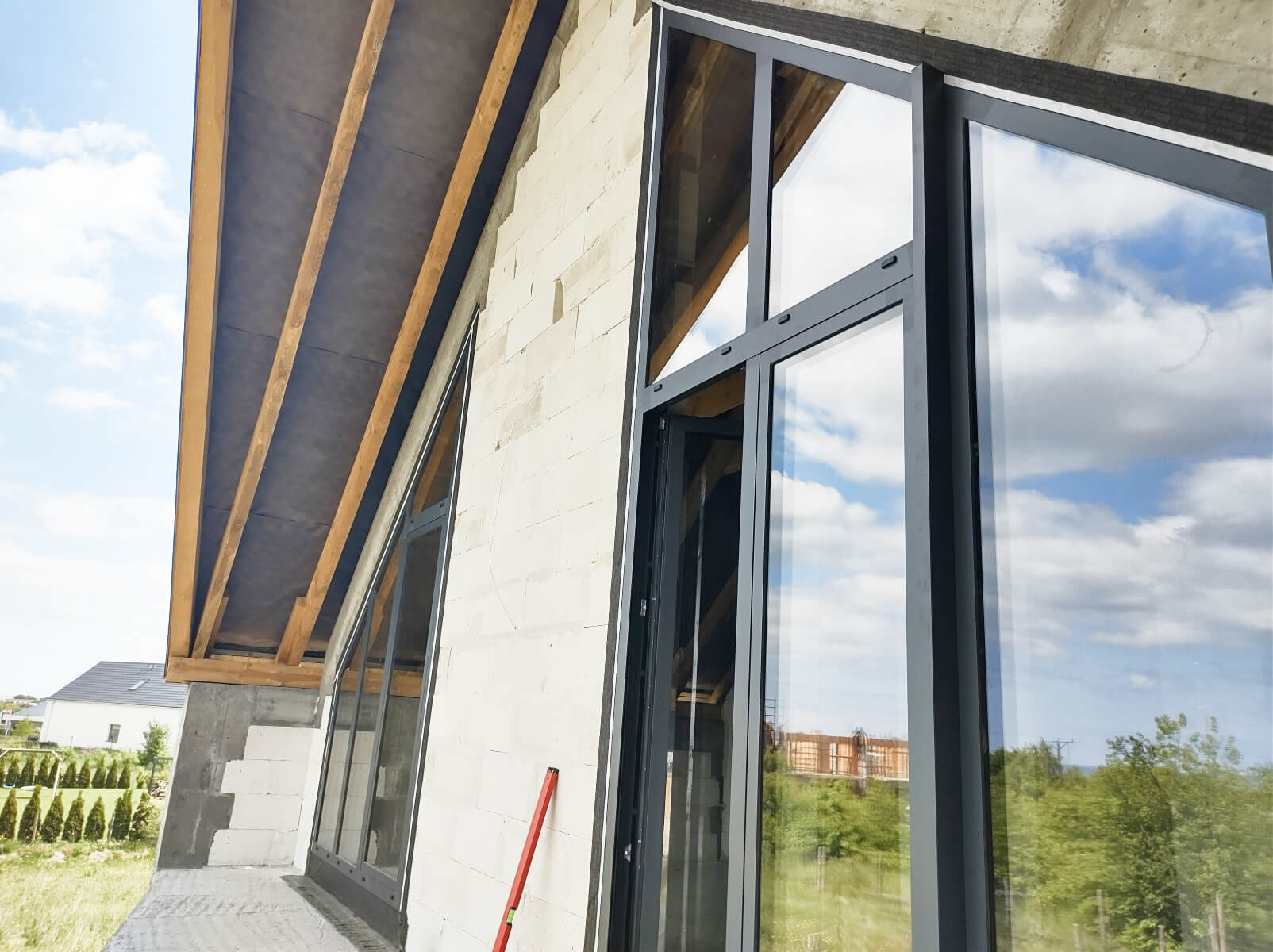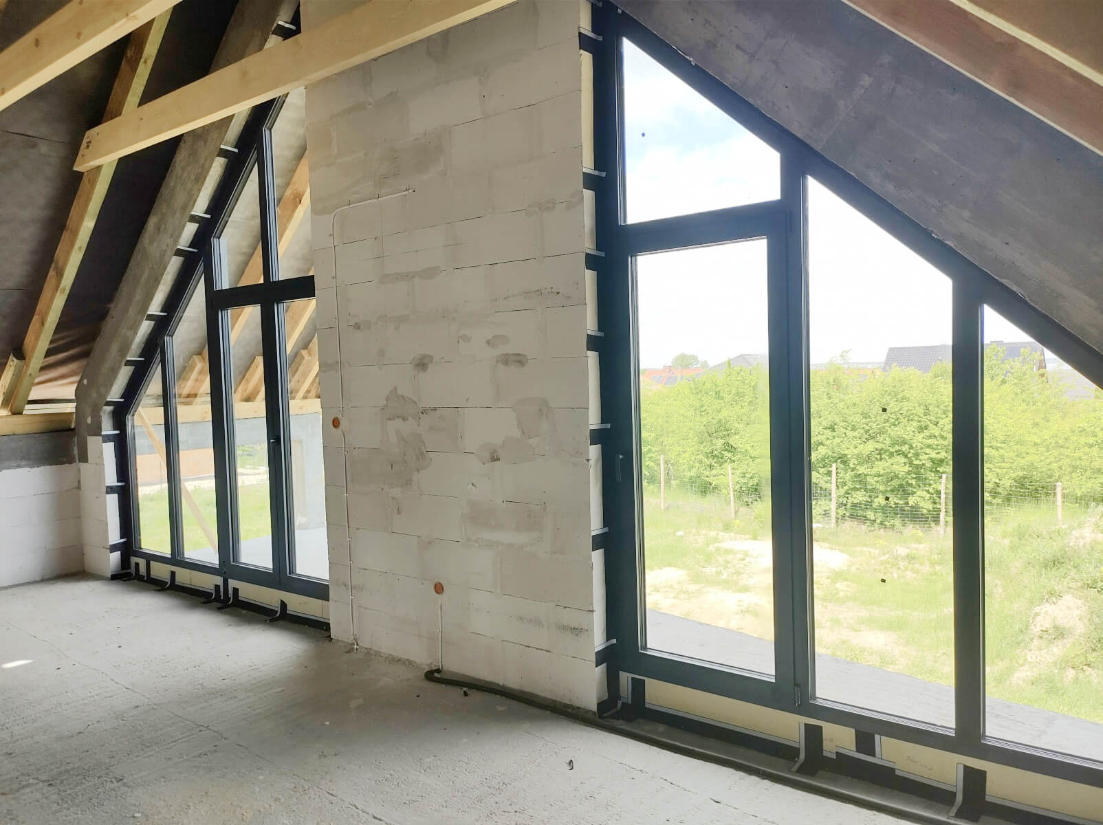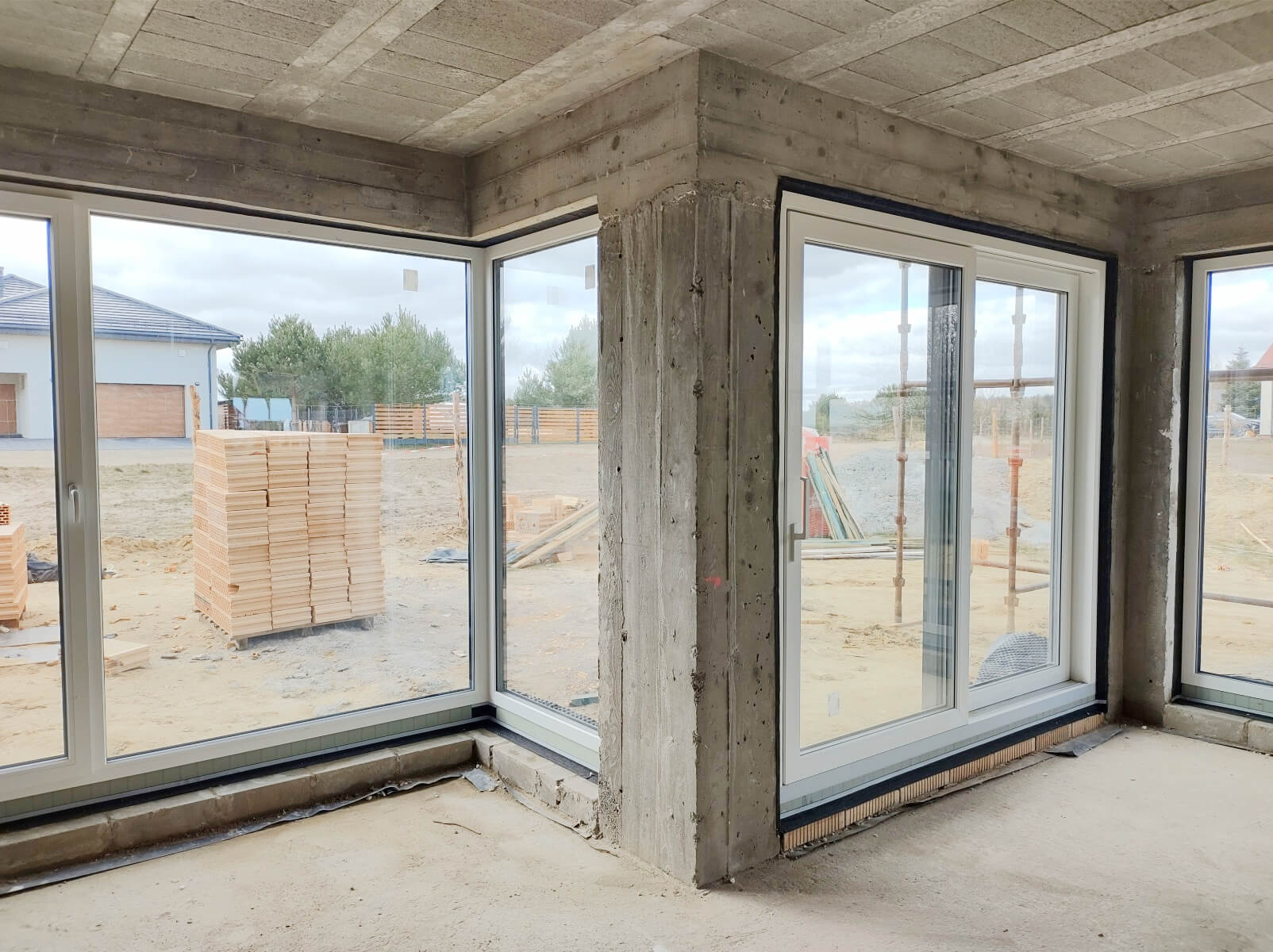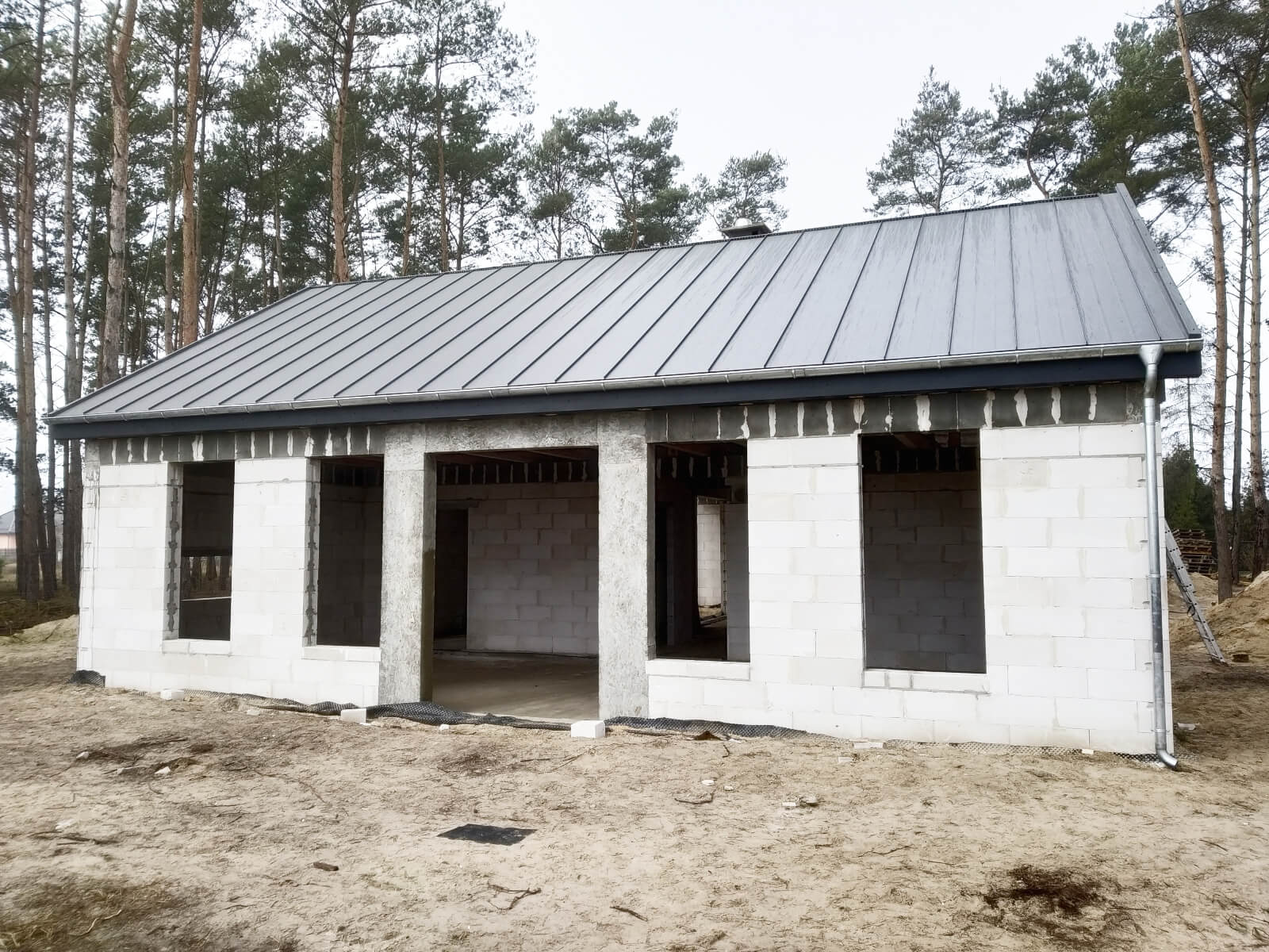 Inwestor odbiera budynek, który ma dach, kompletną konstrukcję nośną (ściany zewnętrzne i wewnętrzne), drzwi zewnętrzne i okna. Stan surowy zamknięty to: