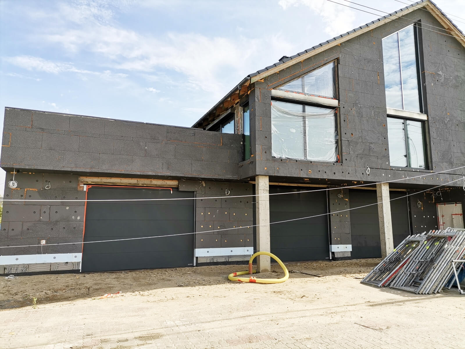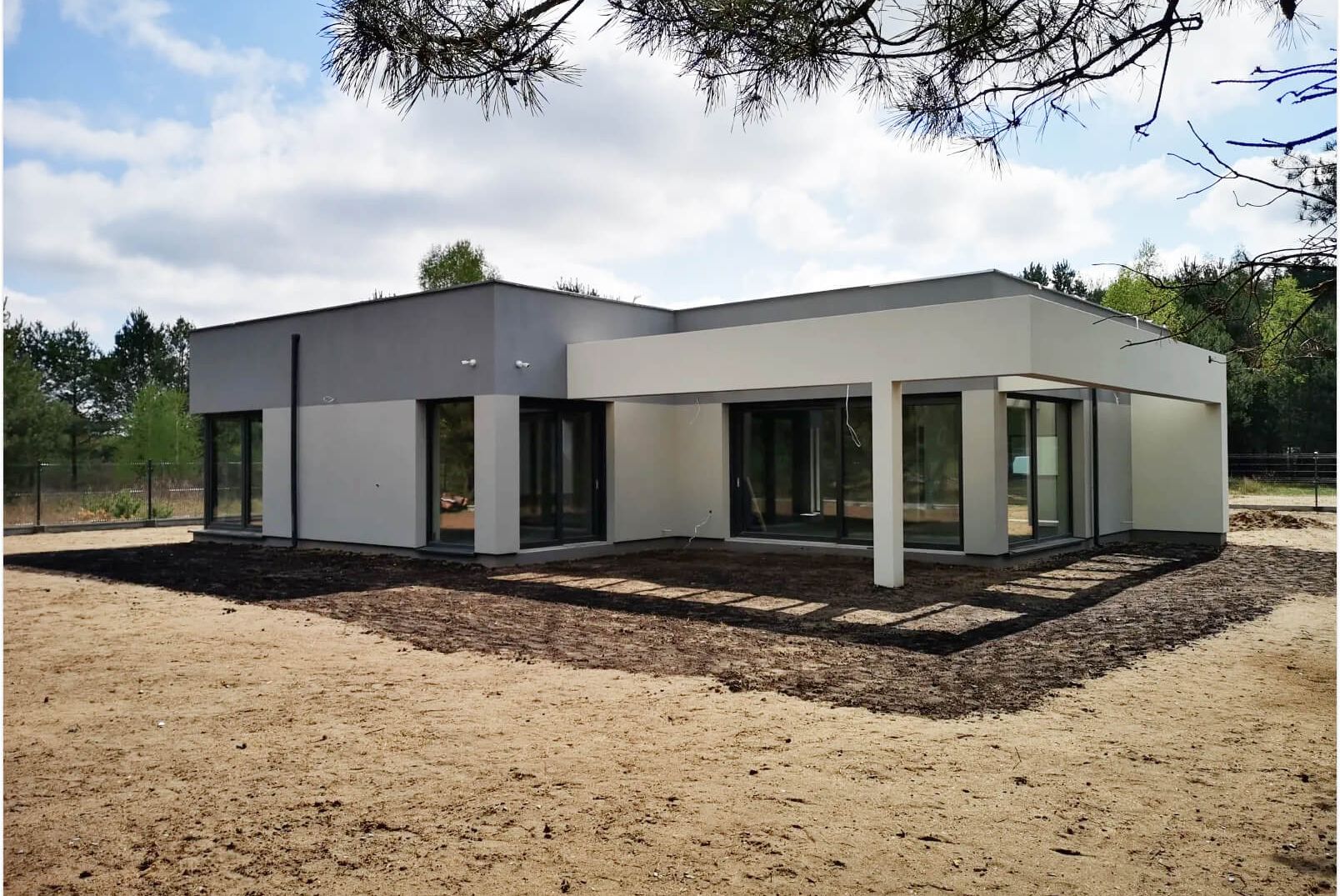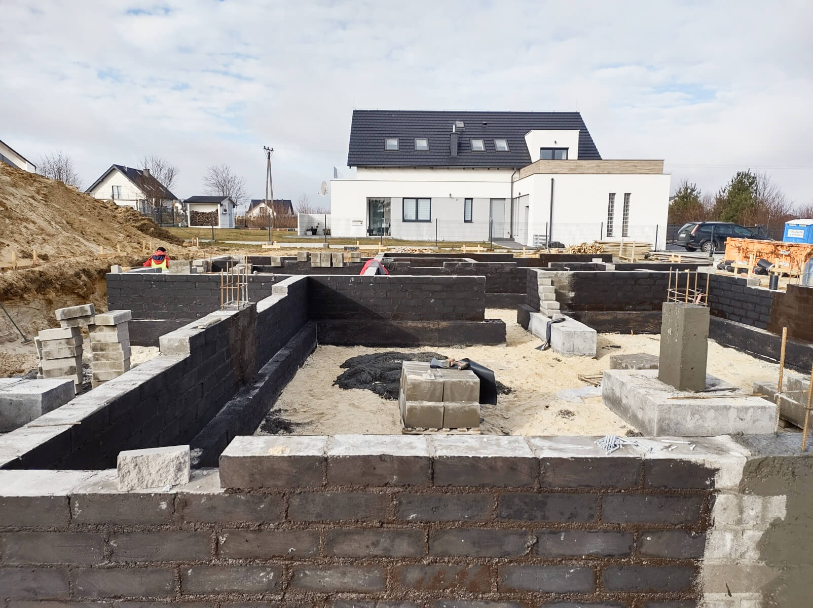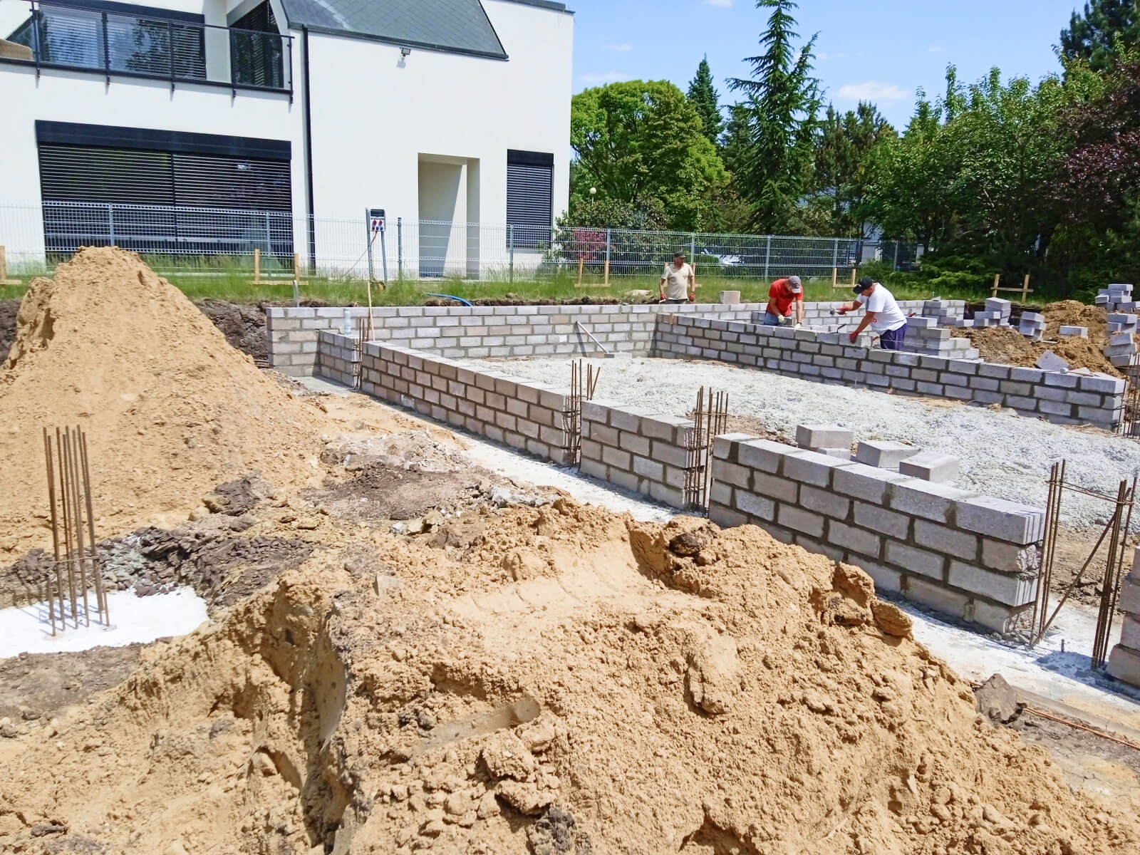 Kiedy projekt został wybrany, a inwestor ma za sobą wszelkie kwestie formalne, rozpoczyna się kompleksowa budowa domu. Jej pierwszy etap wymaga od wykonawcy ogrodzenia placu budowy i wytyczenia budynku w terenie, a następnie budowy fundamentów i piwnic (jeśli są w projekcie). Niezbędne okazują się również wykonanie izolacji przeciwwilgociowej i termicznej części podziemnej, rozprowadzanie instalacji wodno-kanalizacyjnej oraz ułożenie podkładu betonowego.