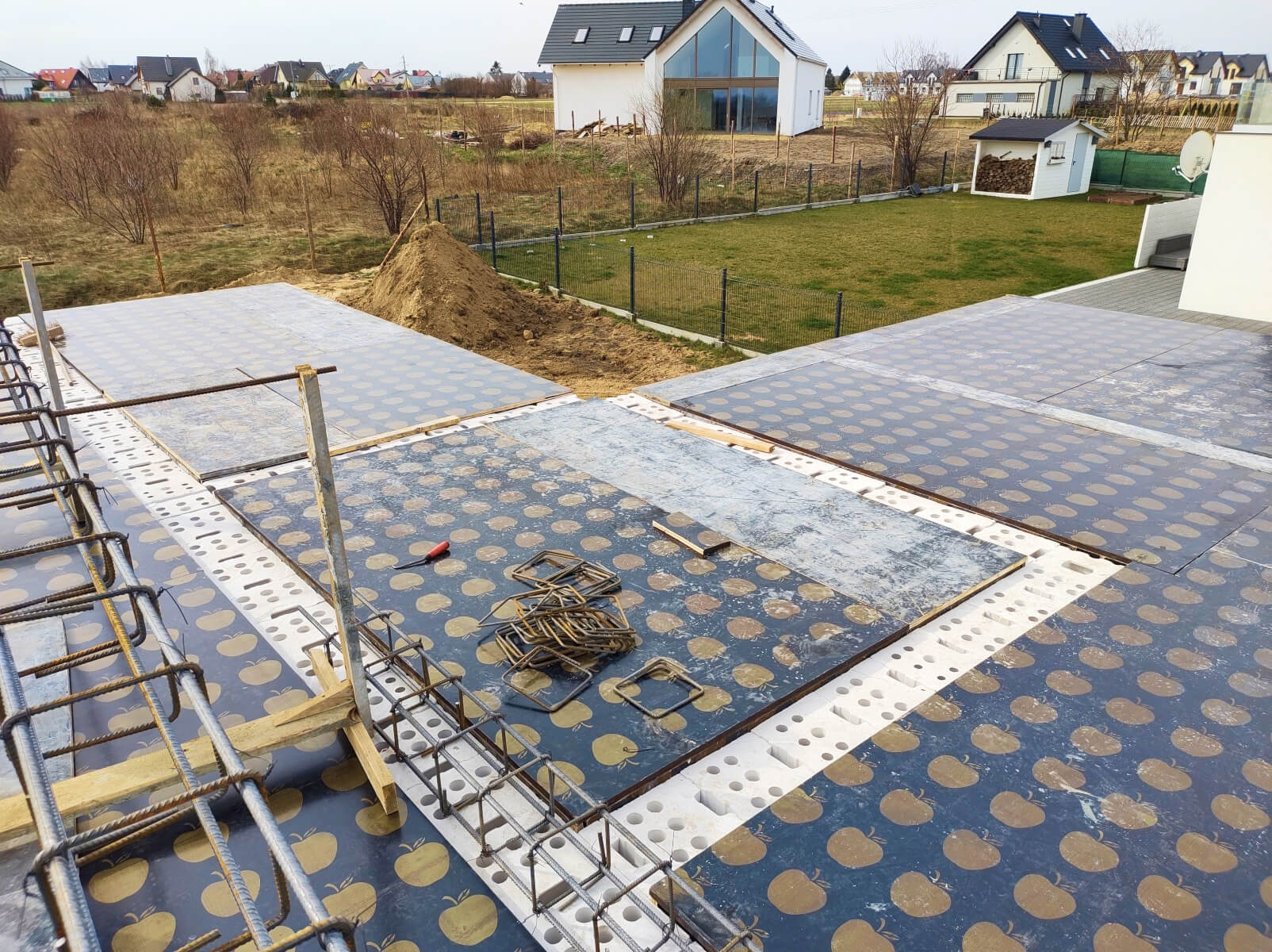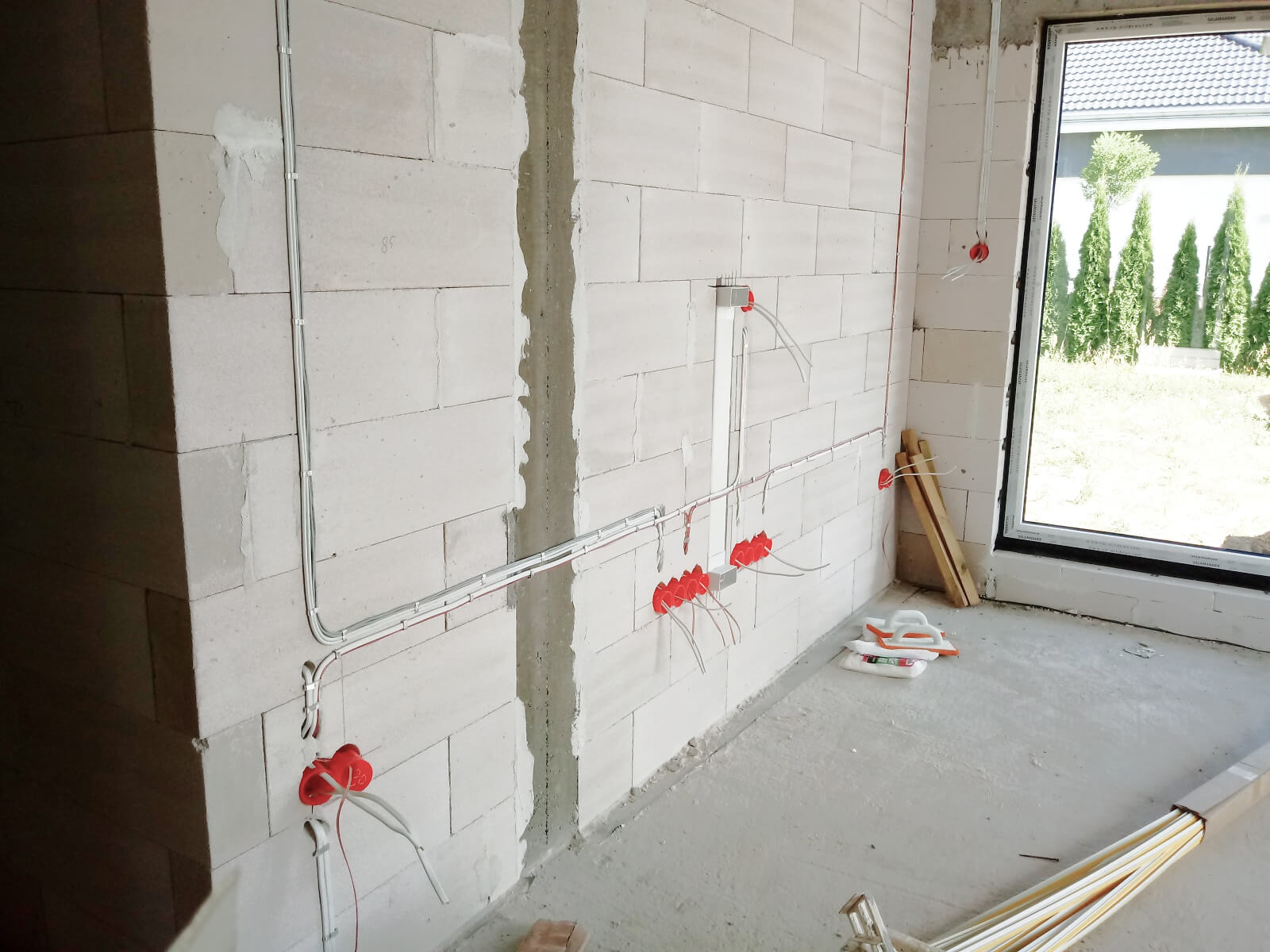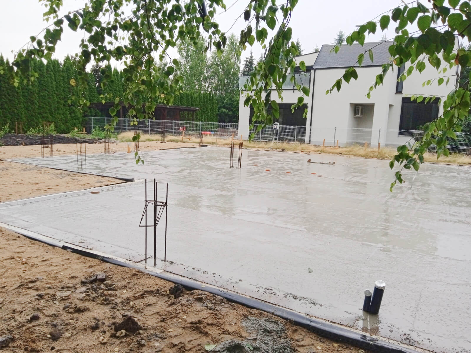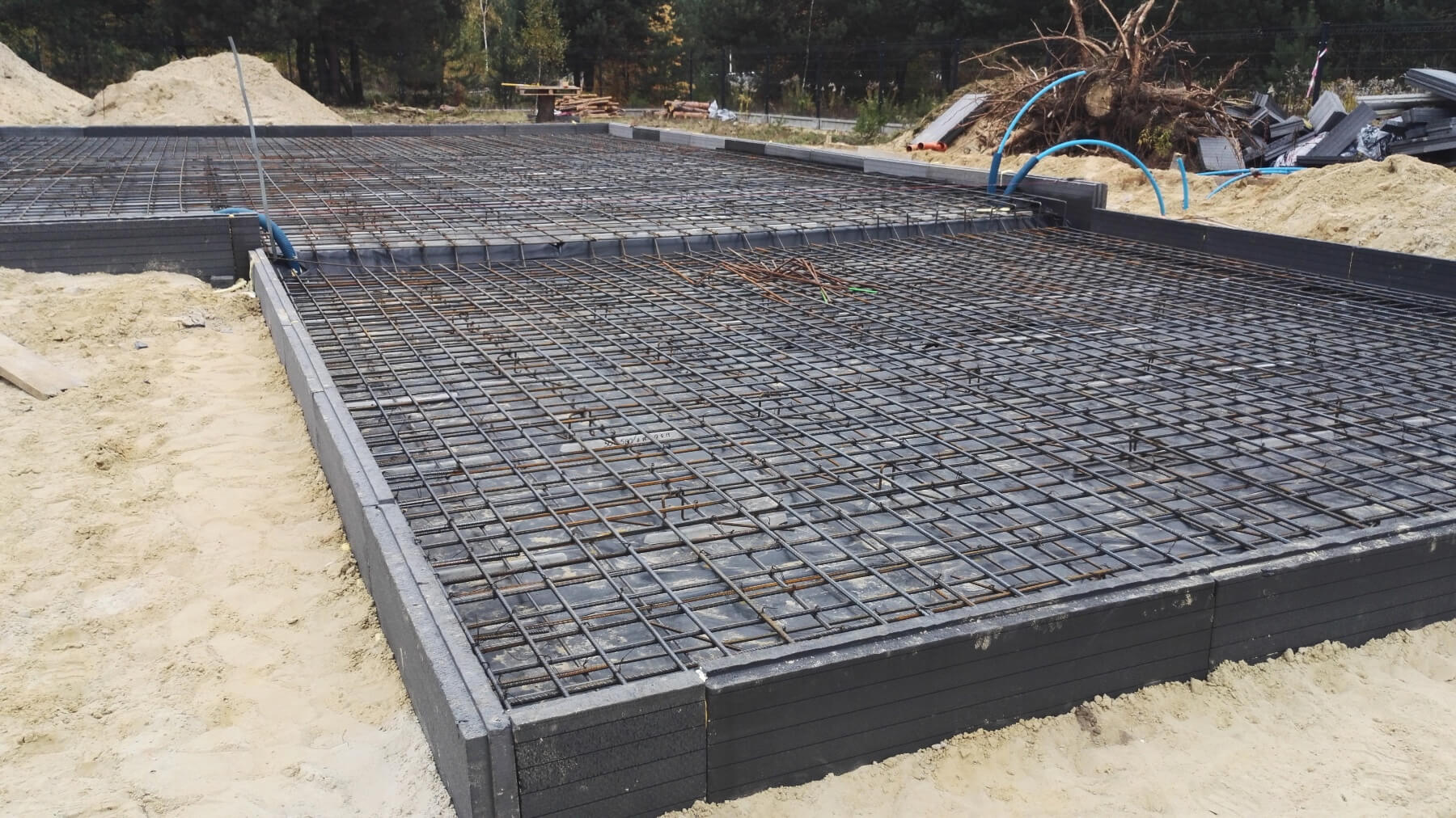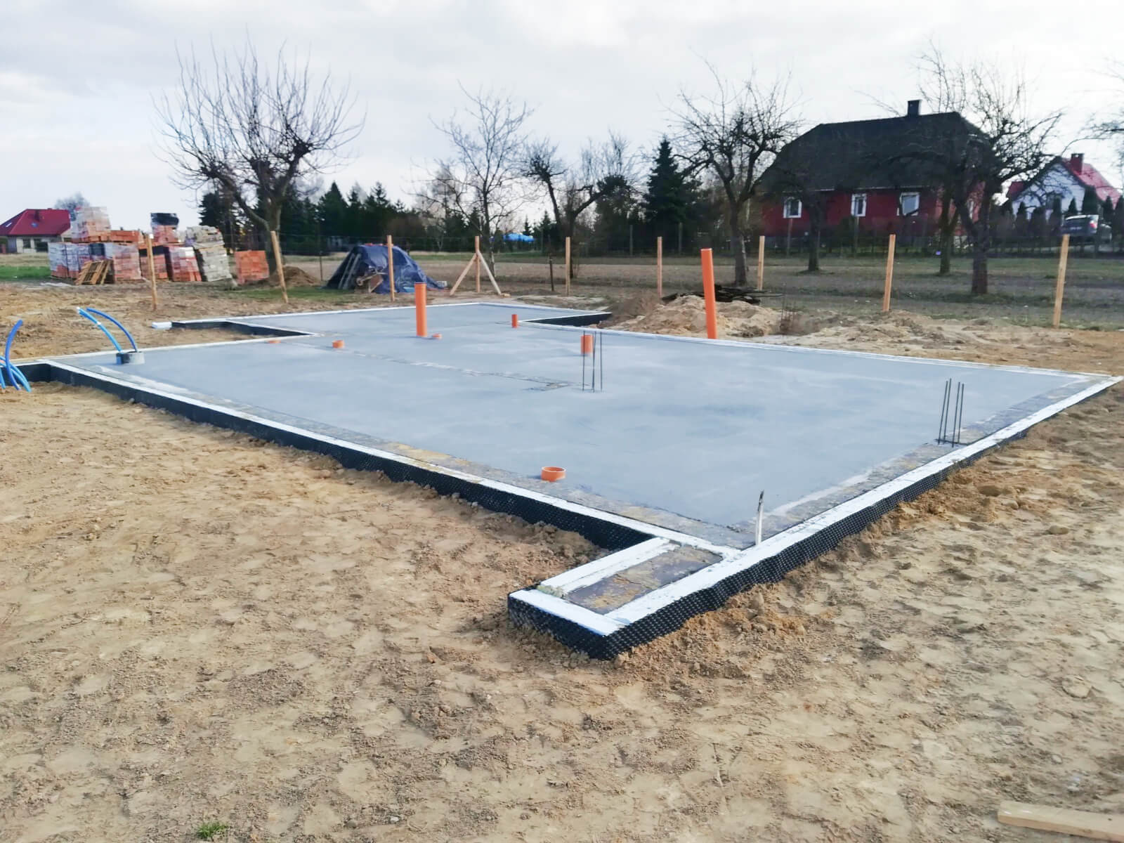 Płyta fundamentowa (lub ławy fundamentowe), instalacja kanalizacyjna, przepusty do przyłącza elektrycznego i wodnego, hydroizolacja, wylewka cementowa (pod warunkiem wybrania takiej opcji).