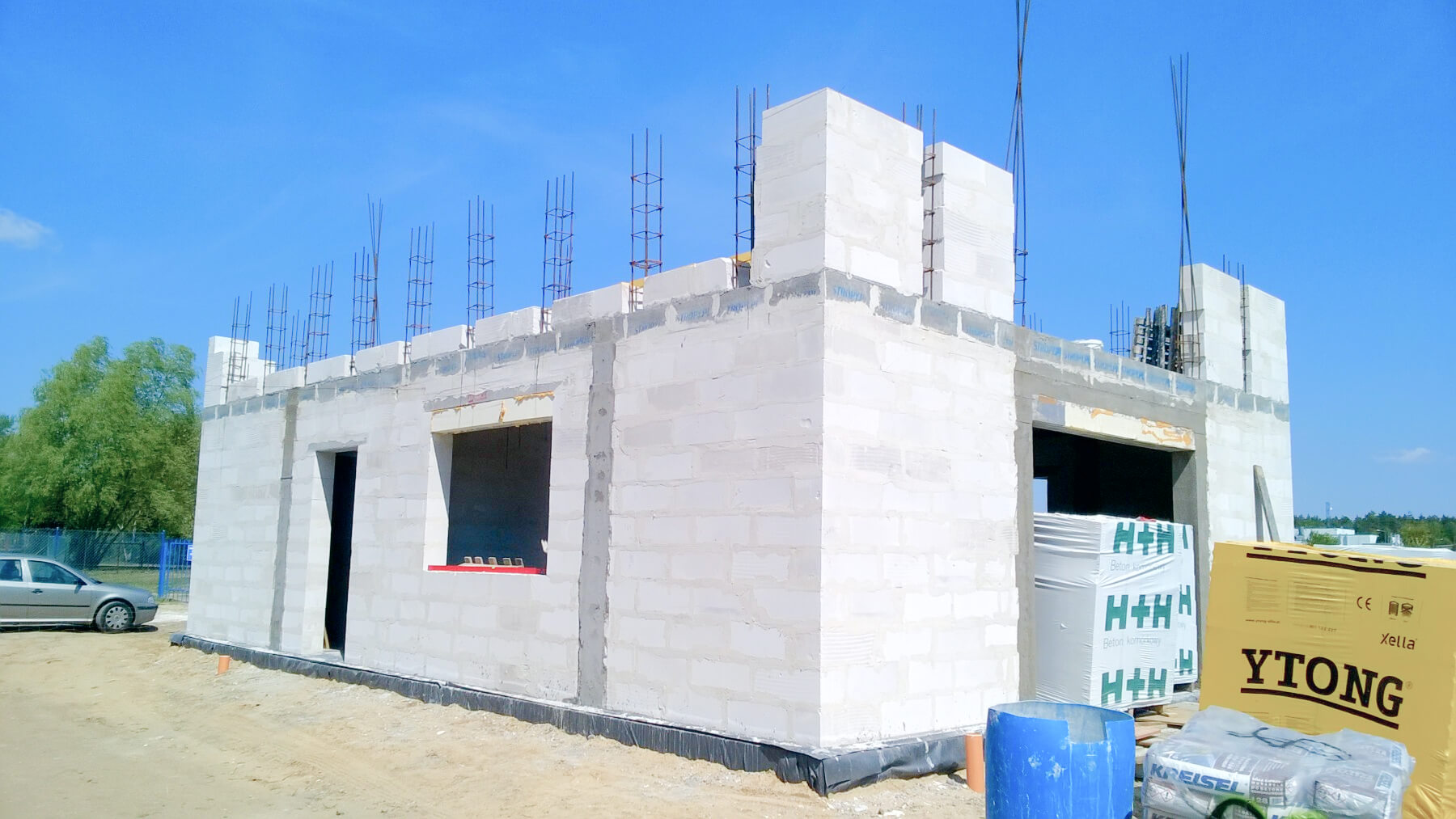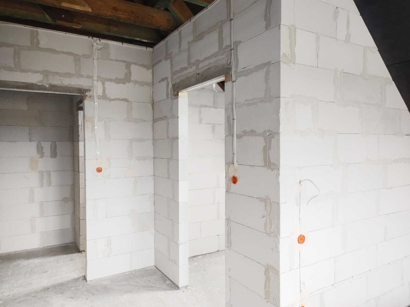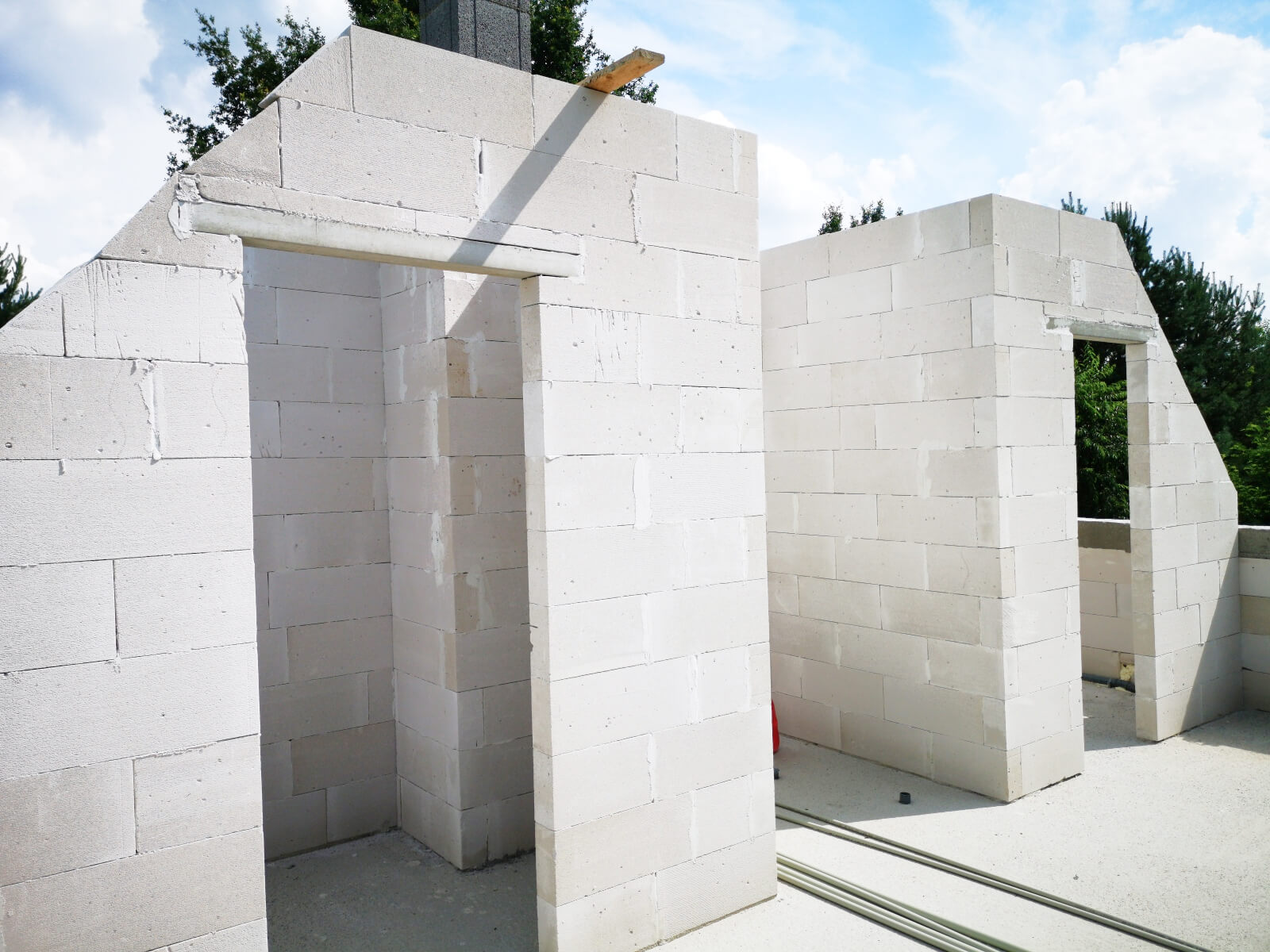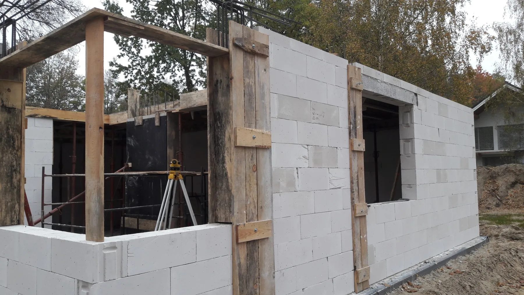Ściany zewnętrzne i wewnętrzne z betonu komórkowego Solbet lub z cegły ceramicznej Porotherm – w zależności od wybranej opcji.