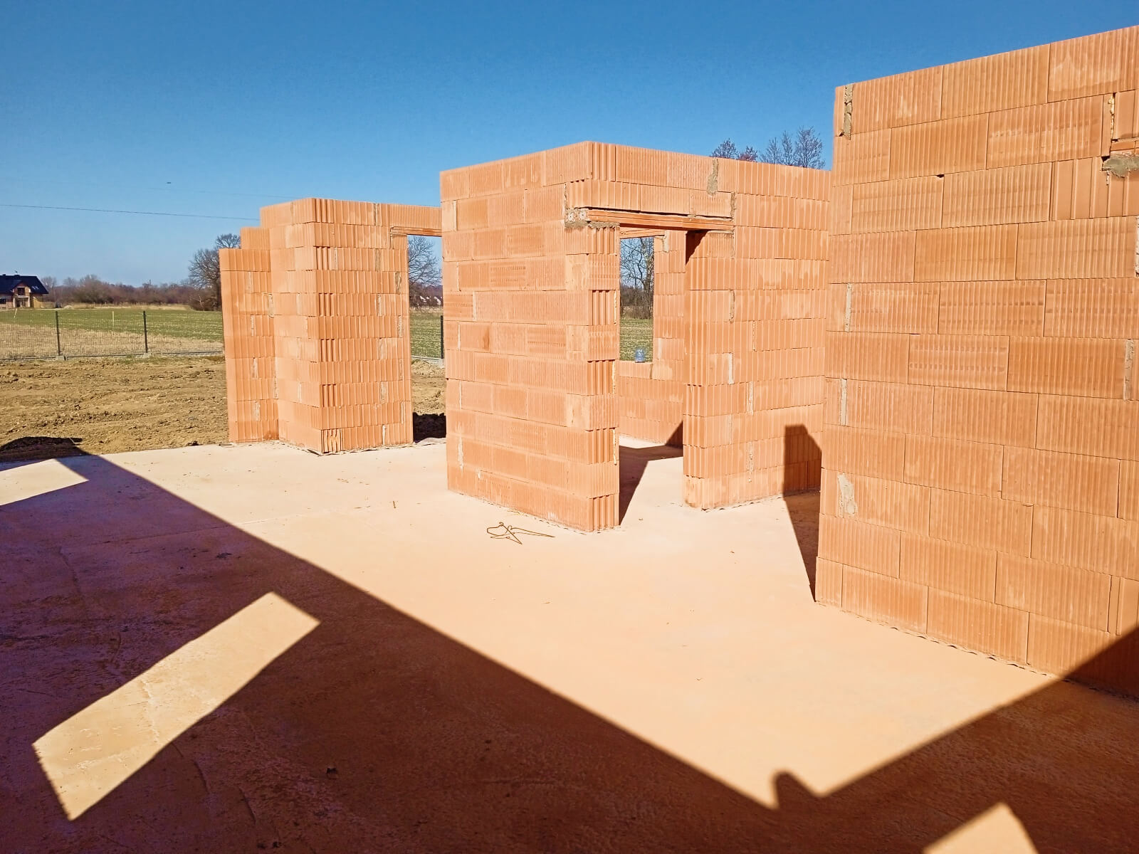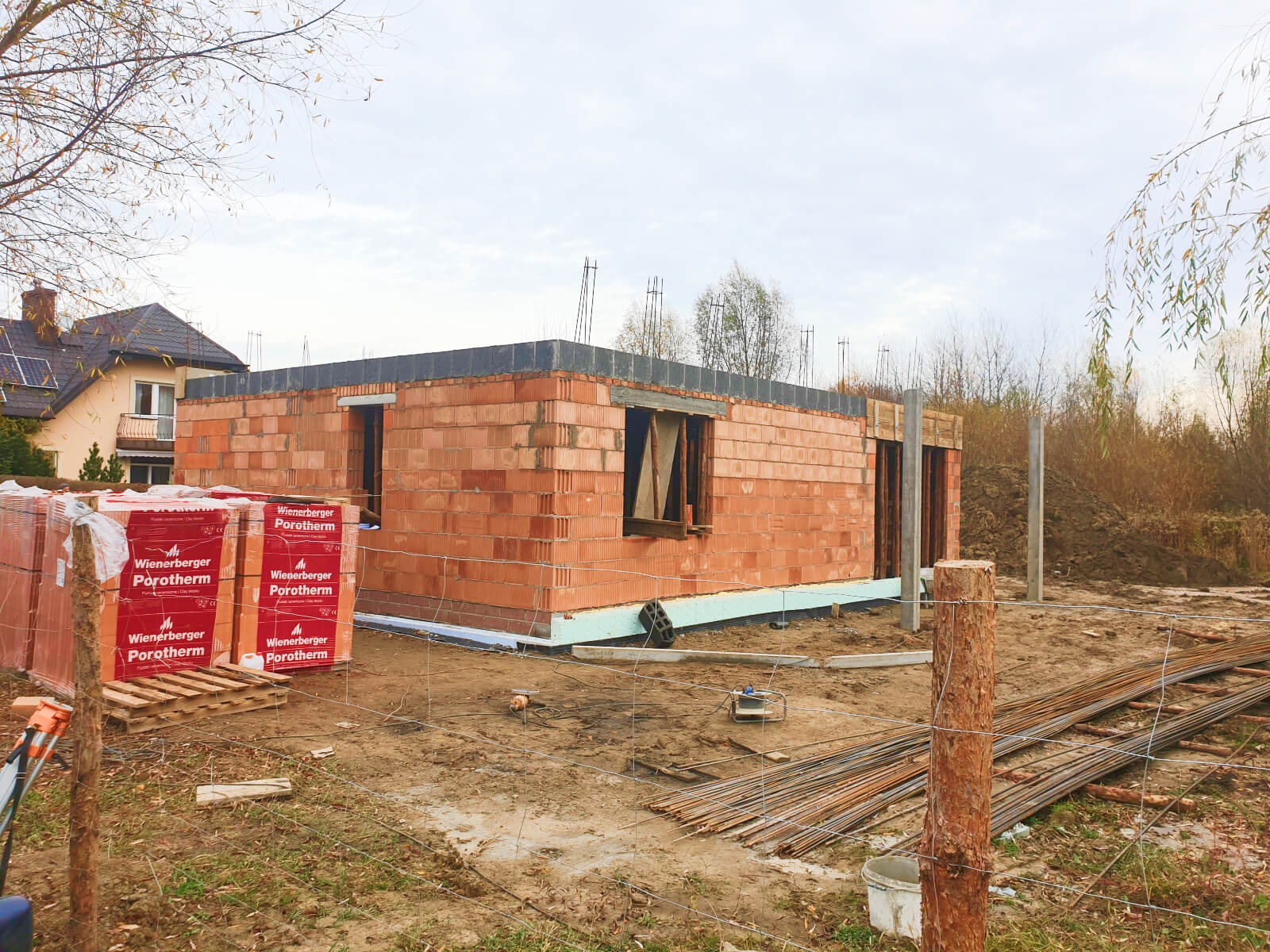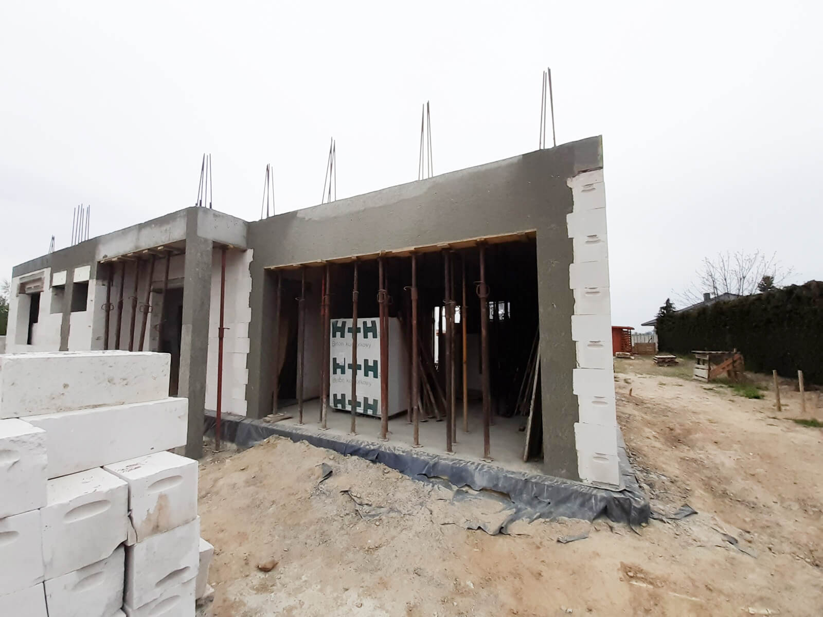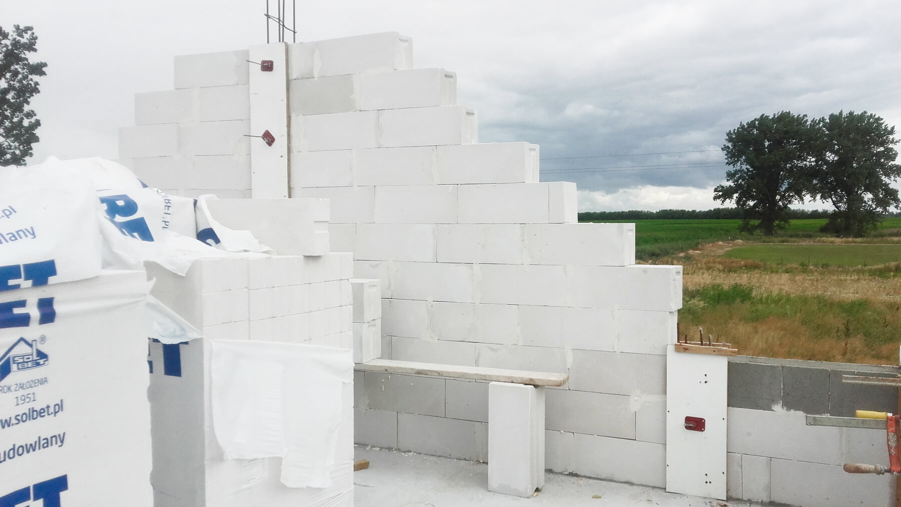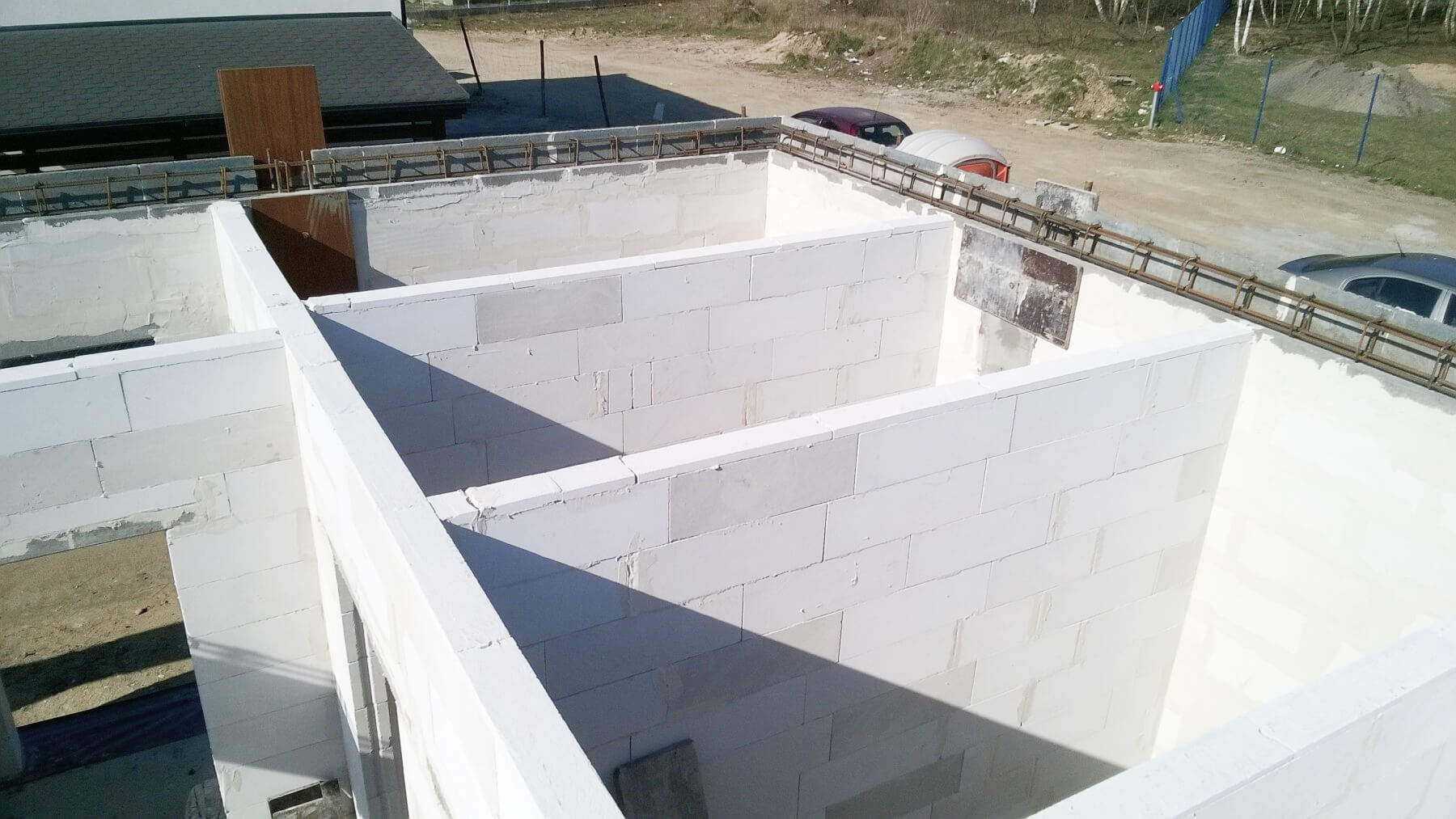 Ściany zewnętrzne i wewnętrzne z betonu komórkowego Solbet lub z cegły ceramicznej Porotherm – w zależności od wybranej opcji.