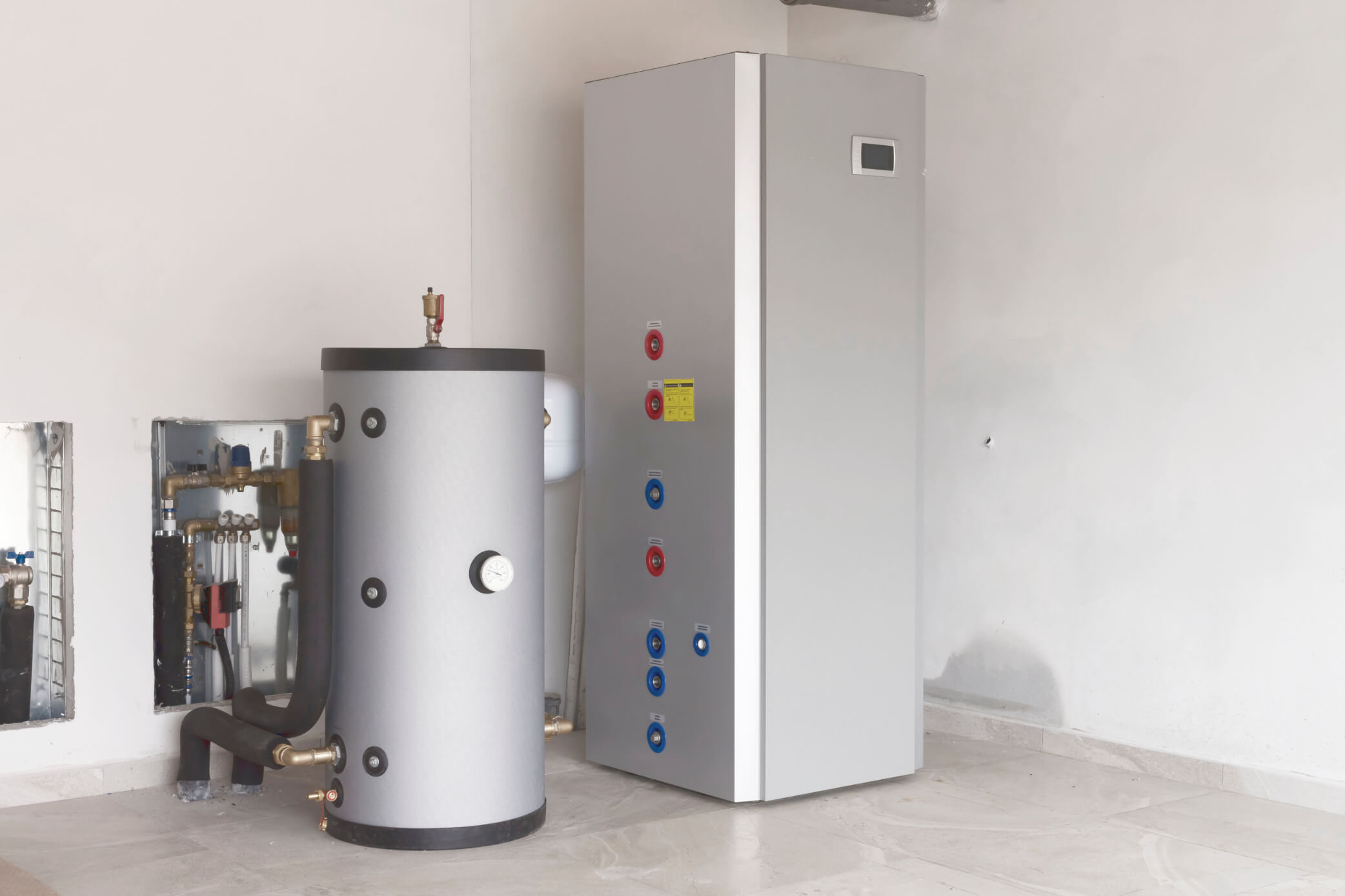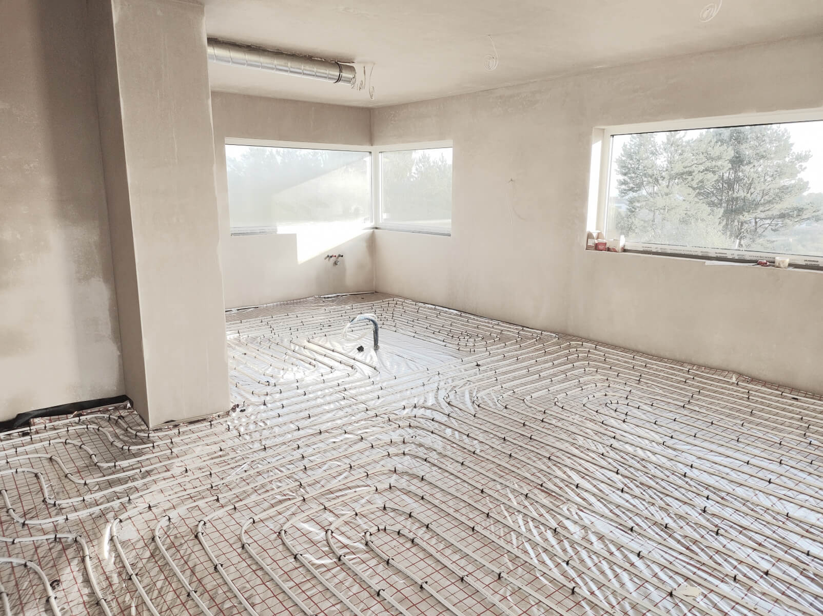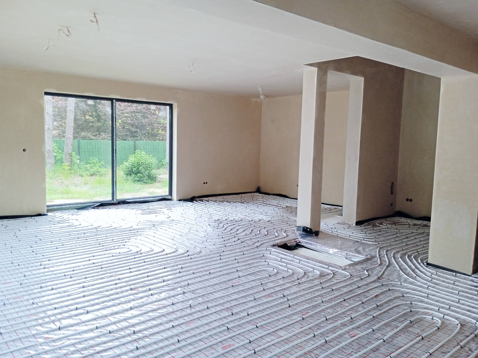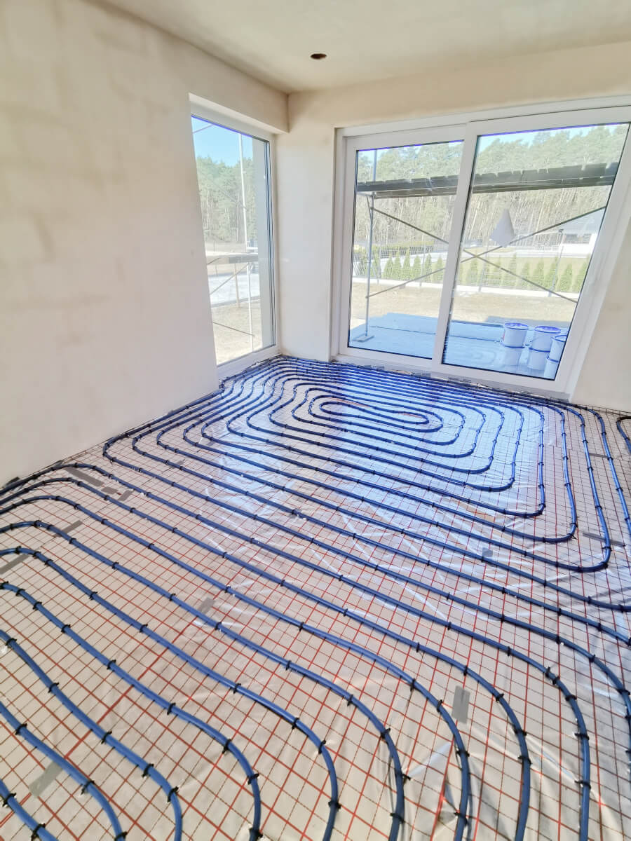 Ogrzewanie podłogowe (z kotłownią lub bez, w zależności od wybranej opcji) wraz z osprzętem lub pełną instalacją ogrzewania elektrycznego wg projektu, zawierającą czujniki oraz termostaty; ... więcej ogrzewanie akumulacyjne kablami zatopionymi w posadzce. Źródło ciepła: montaż powietrznej pompy ciepła lub kotła gazowego – w zależności od wybranej opcji.