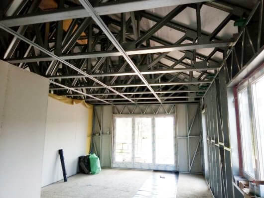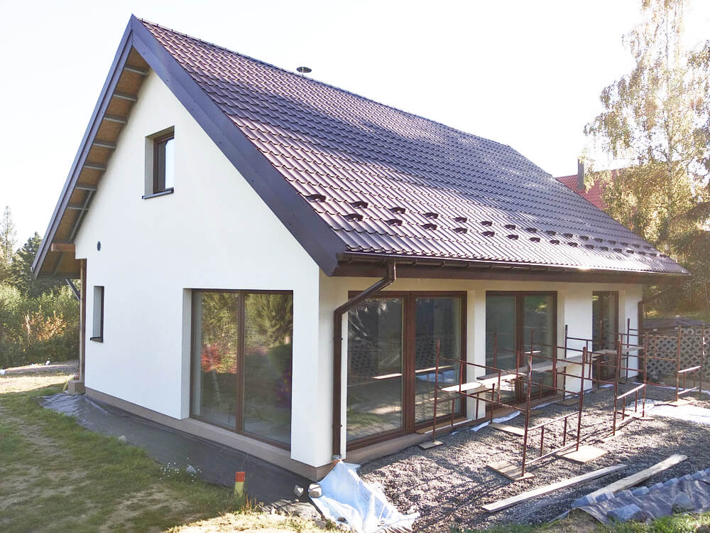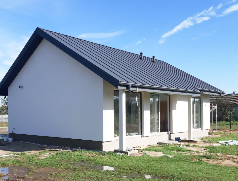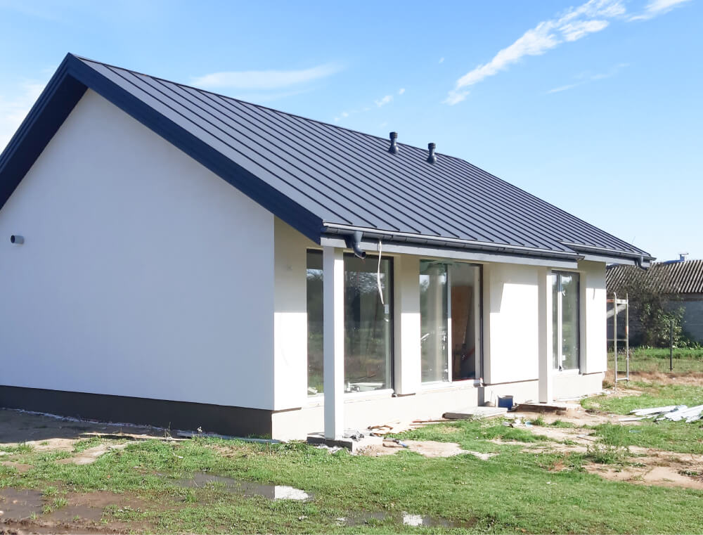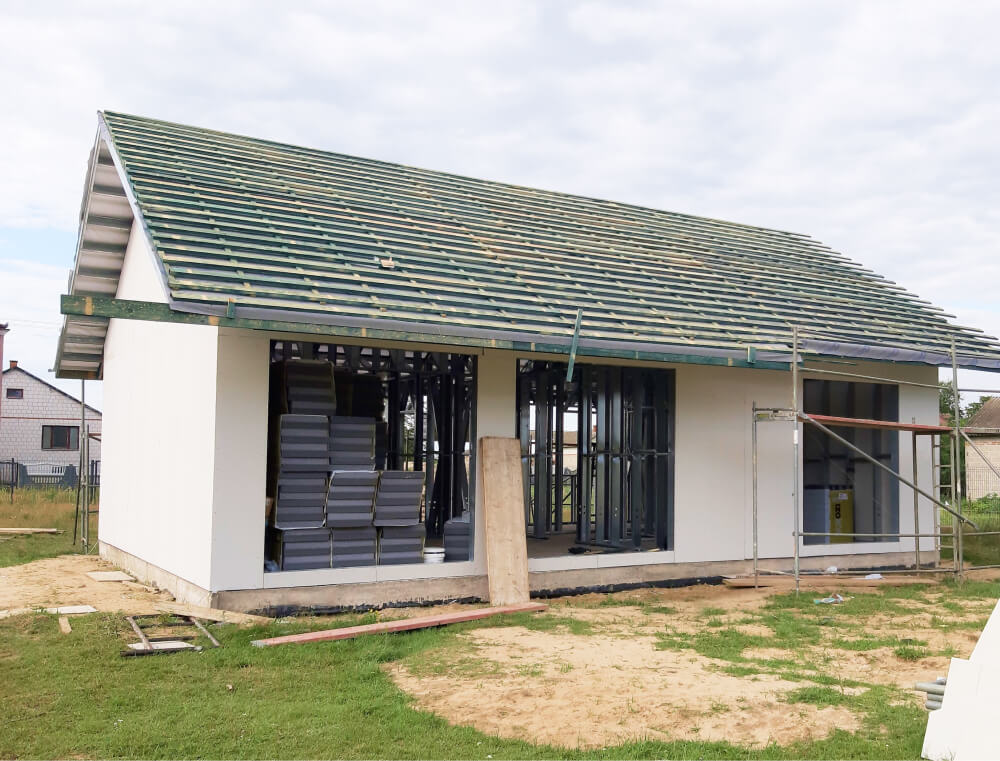 Kiedy konstrukcja stalowa domu, ściany i dach są już gotowe, można rozpocząć prace wykończeniowe.Te przebiegają w podobny sposób, jak w przypadku budynków wznoszonych w technologii murowanej.