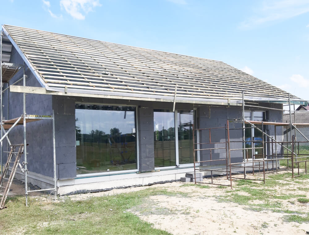 Po zamontowaniu szkieletu ścian nośnych i działowych, stopów oraz konstrukcji dachu, można przejść do dalszego etapu, czyli wykonania ścian zewnętrznych i wewnętrznych.