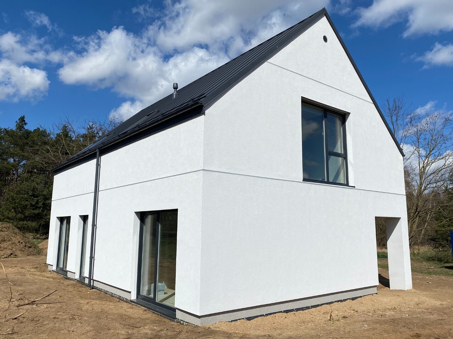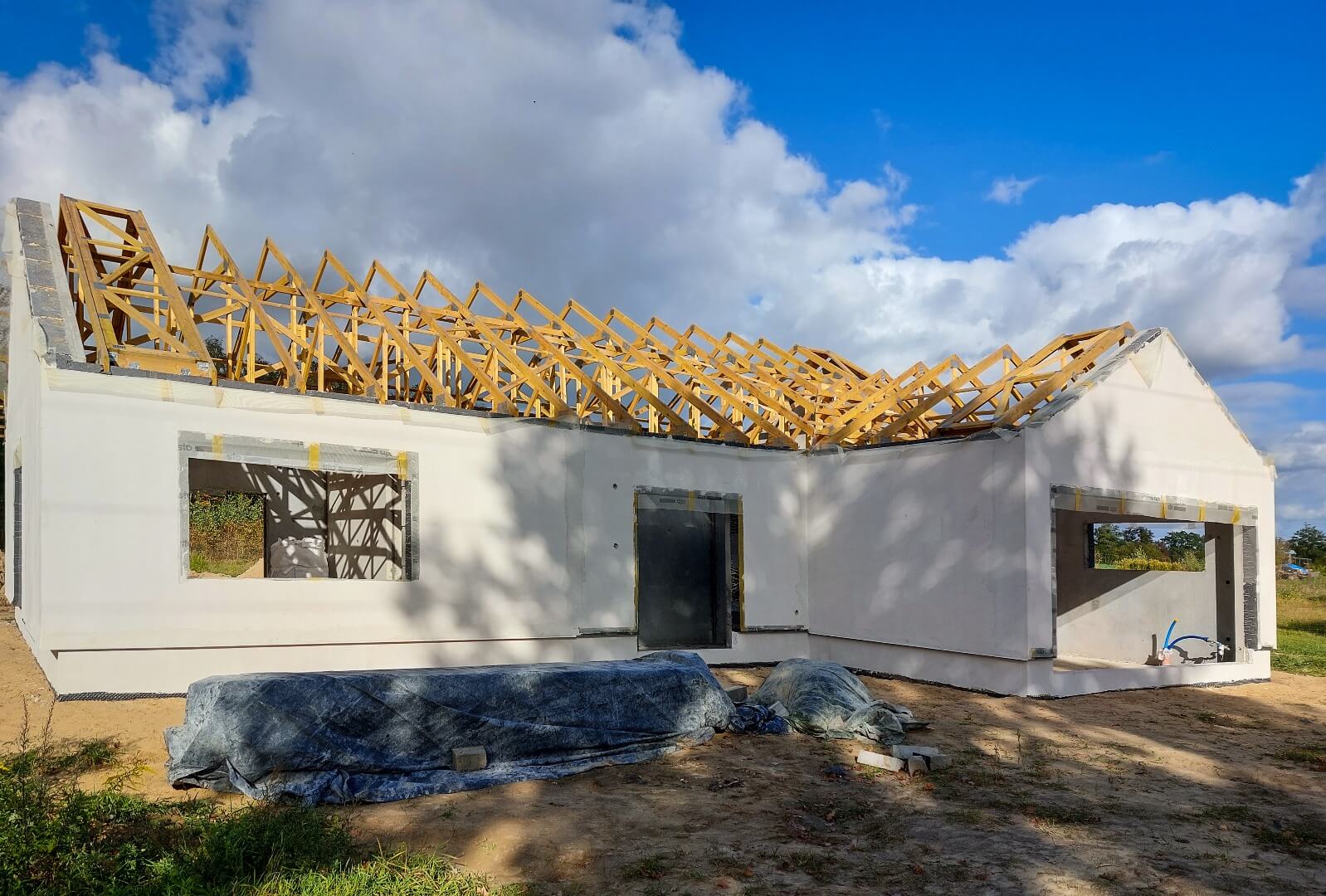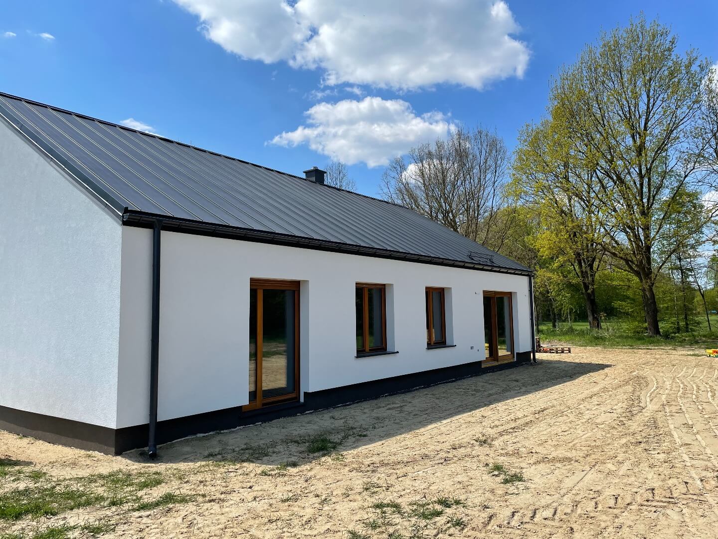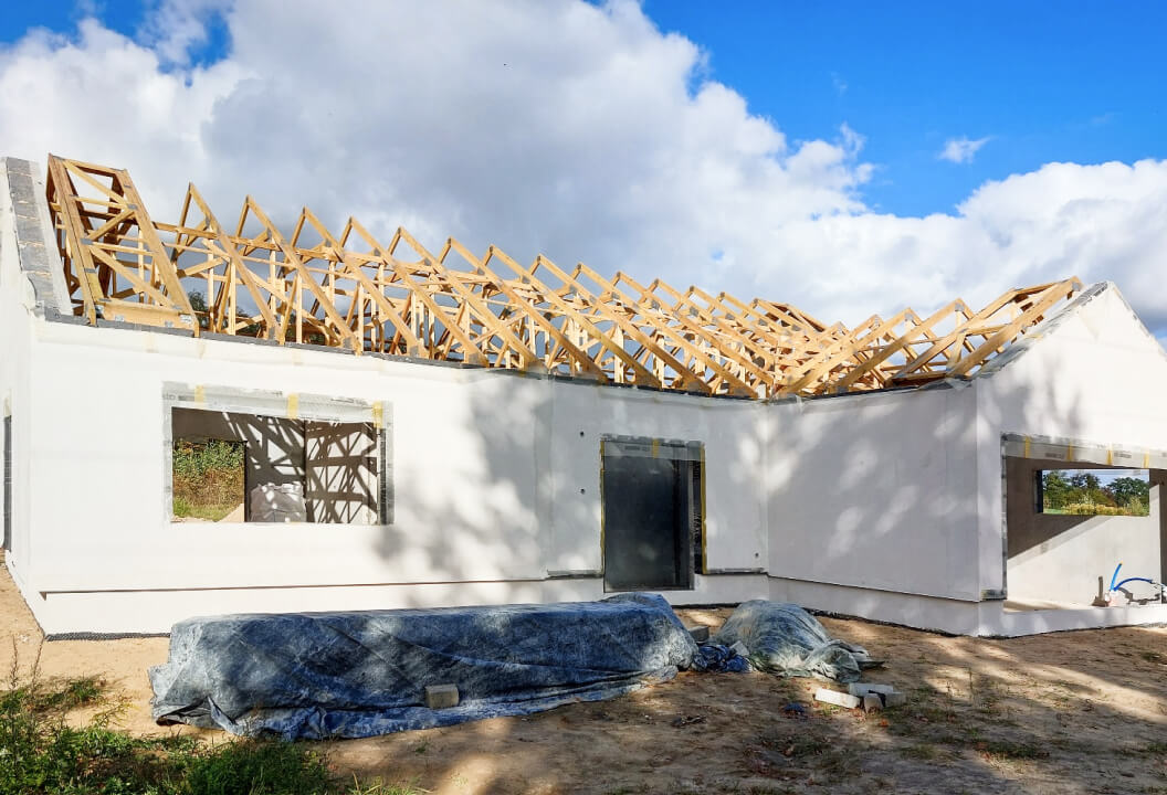 Dom może stanąć na przygotowanej działce już w miesiąc, niezależnie od pogody i pory roku. Plac budowy pozostaje czysty, ponieważ budowa nie generuje odpadów.