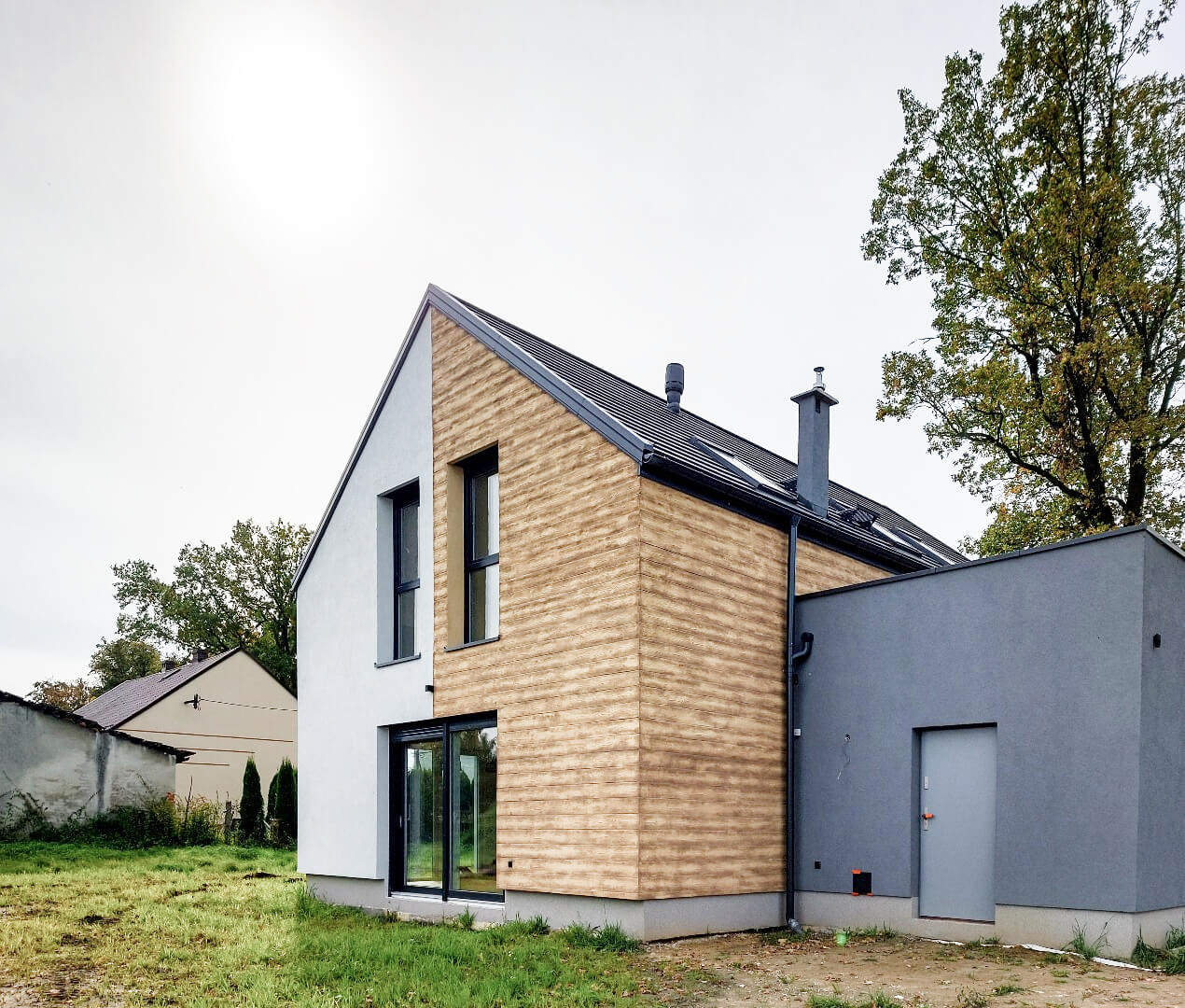 Jaka elewacja odpowiada Ci najbardziej? Nasi klienci najchętniej wybierają tynk, jednak możesz zdecydować się na drewno, imitację drewna w postaci odcisku drewna lub panele.