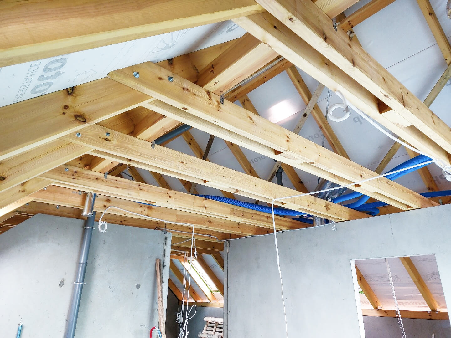 W zależności od wybranego przez klienta projektu i preferencji stosowane są wiązary dachowe lub tradycyjna więźba dachowa z drewna klasy C24. Możliwe jest zastosowanie dowolnego pokrycia dachowego np. blachodachówki, blachy na rąbek stojący, dachówki ceramicznej lub cementowej.