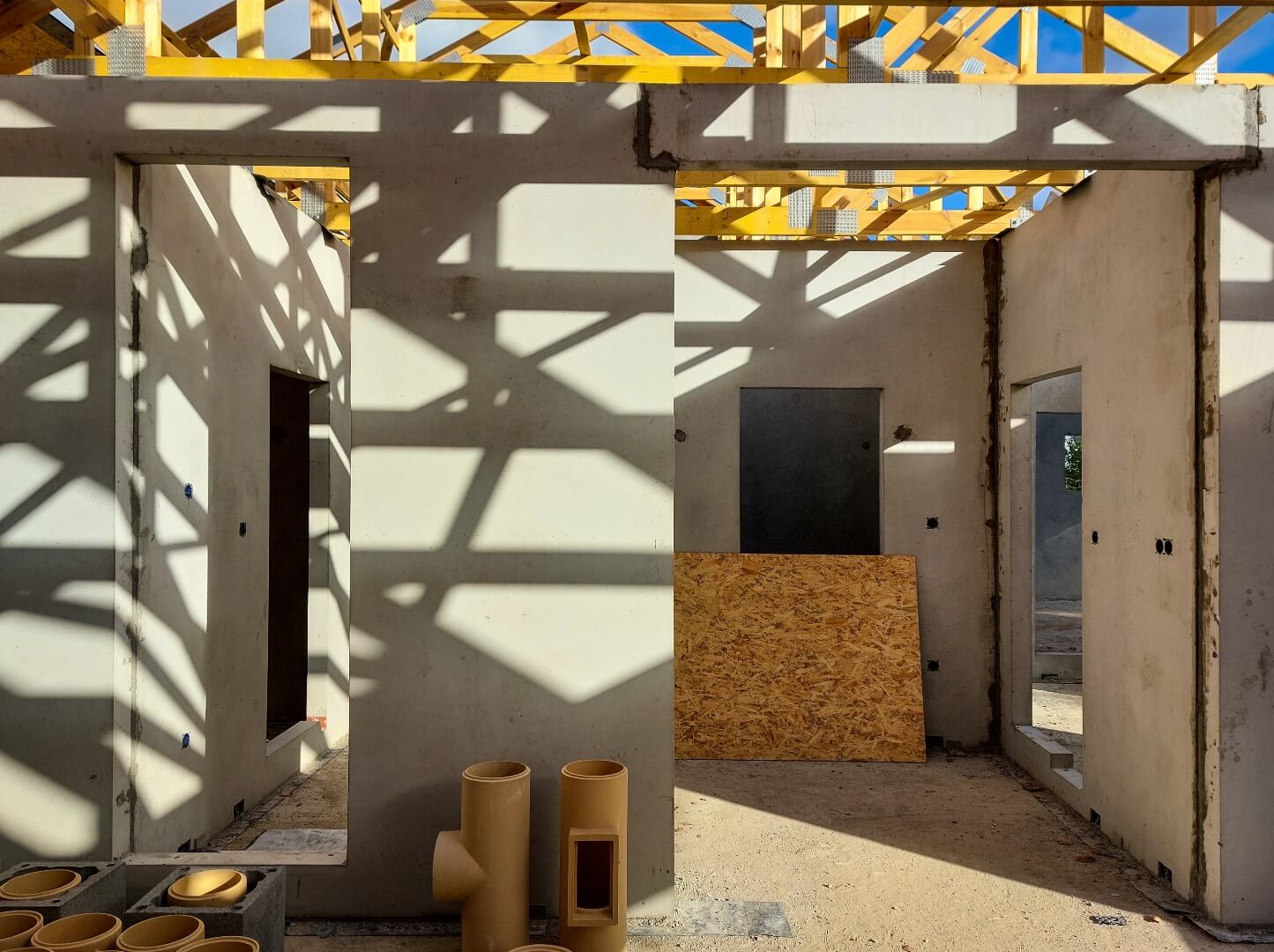 Kiedy ekipa pracuje nad fundamentem, w fabryce powstają poszczególne elementy domu. Stropy, ściany, schody - wszystkie elementy konstrukcji są precyzyjnie wymierzone i dopasowane co do milimetra.