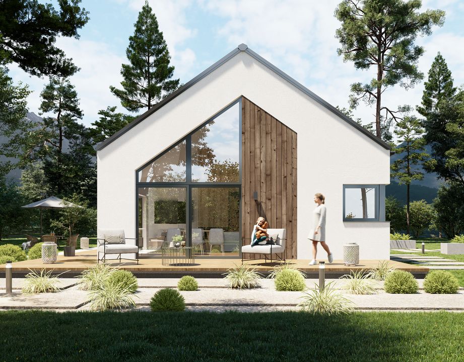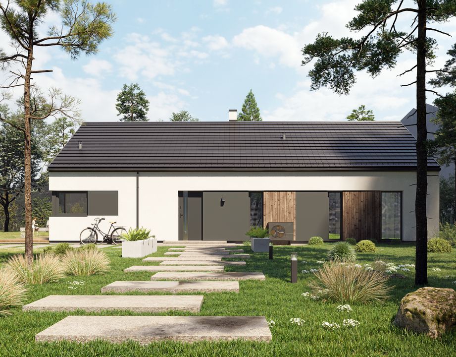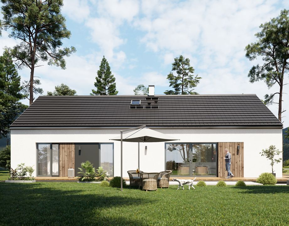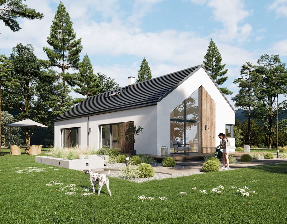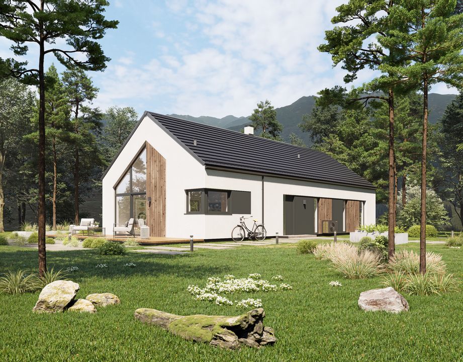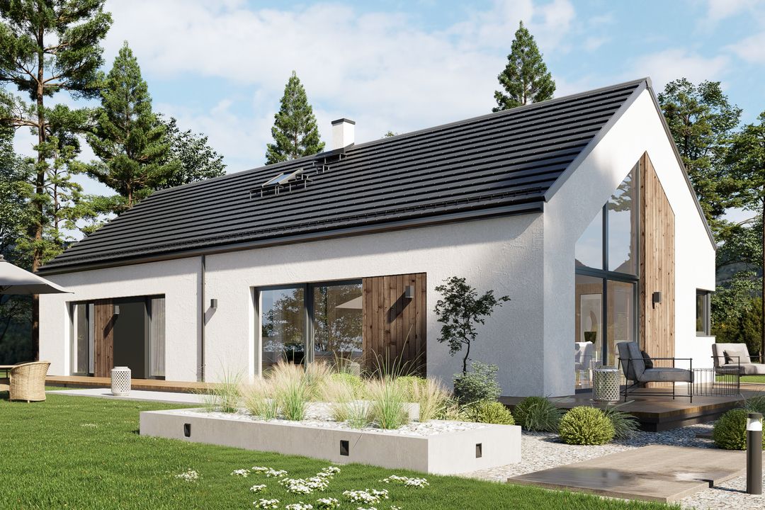 Łączy w sobie prostotę i funkcjonalność. Elegancki dach bezokapowy nadaje bryle lekkości i nowoczesnego charakteru, harmonijnie komponując się z naturalnym krajobrazem.