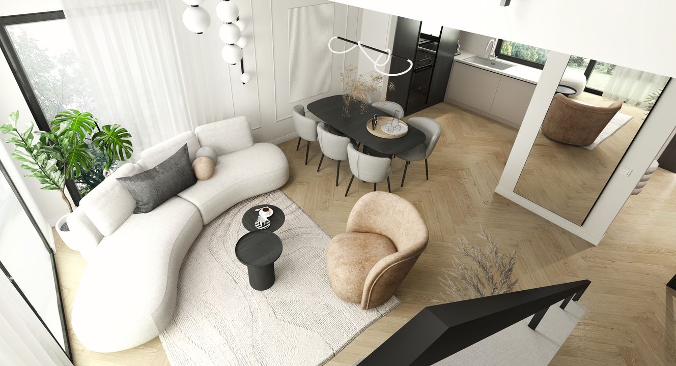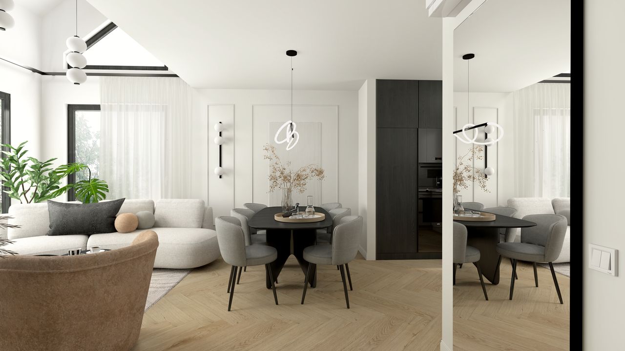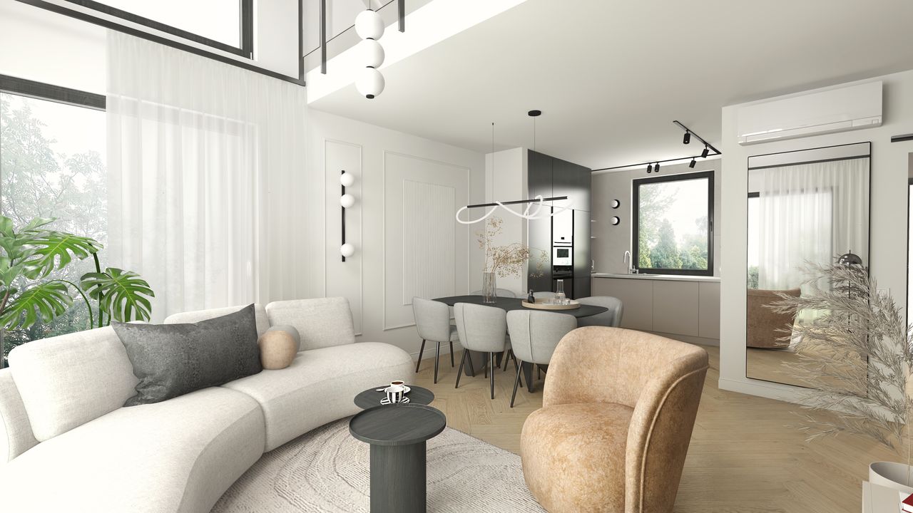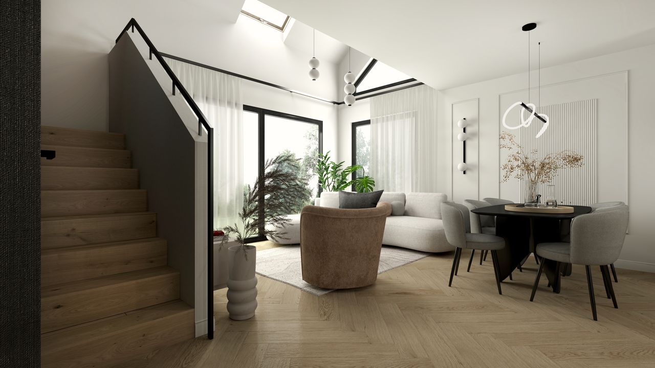 Salon, kuchnia i przestrzeń wspólna mogą zostać zaprojektowane tak, aby idealnie odpowiadały Twoim potrzebom od wielkości przeszkleń po atmosferę wnętrza.