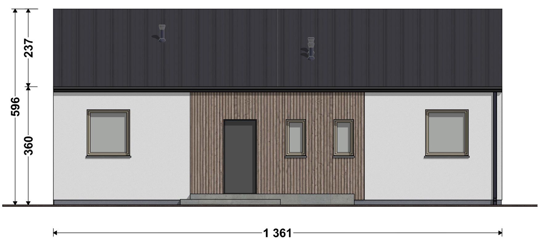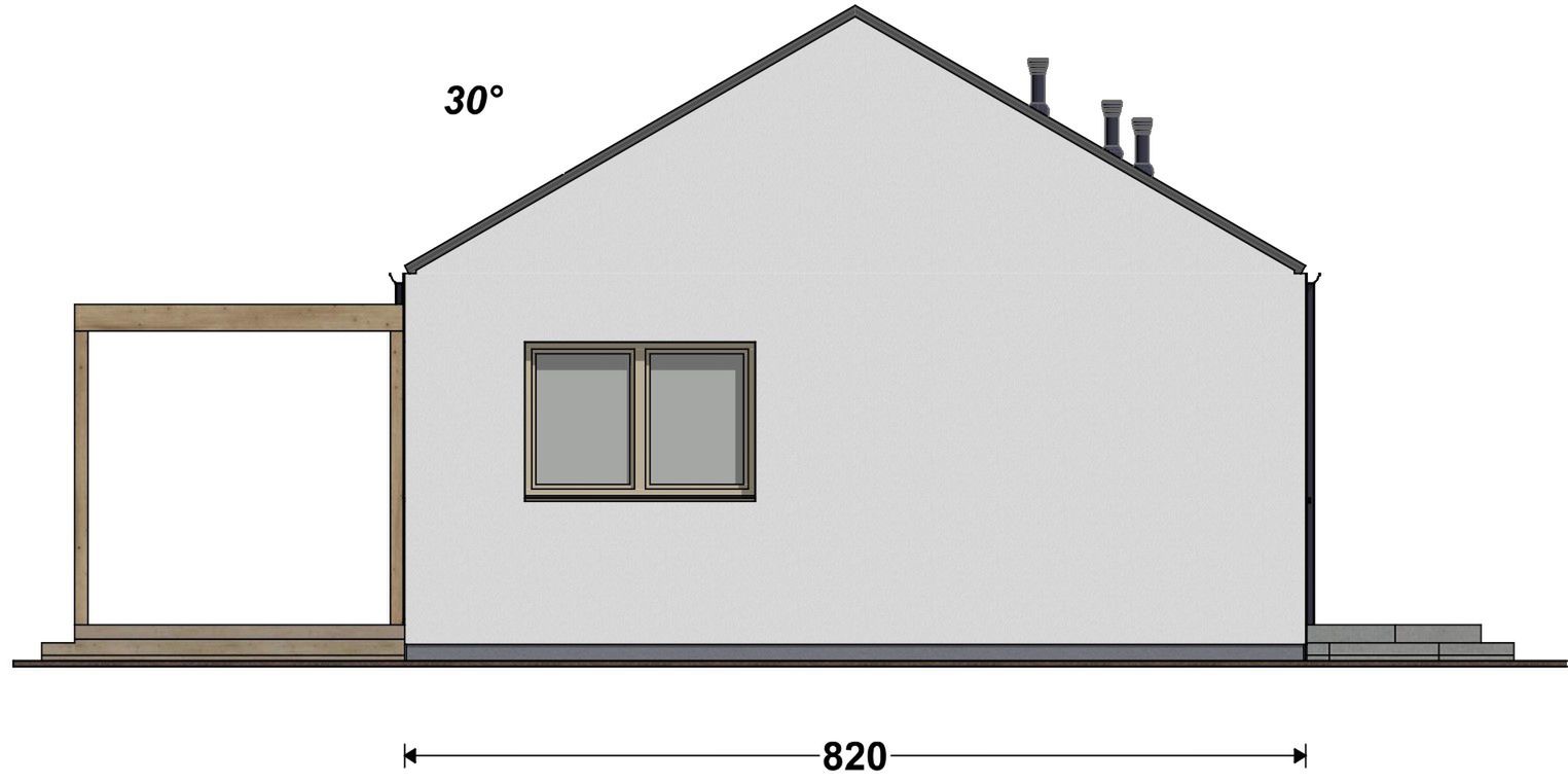 Graficzne opracowanie rzutów poglądowych widocznych na karcie projektu zostało wykonane przez Extradom.pl. Prezentowane przez Extradom.pl wizualizacje wykonane zostały przez autora projektu i należy poczytywać je jedynie za przykład i propozycję wykończenia, wizję architektoniczną autora projektu. Ostateczne wykończenie budynku może nastąpić na wiele sposobów. Szczegółowe rozwiązania zastosowane w oferowanej dokumentacji - w tym również ilość, lokalizacje i wygląd okien, drzwi, kominów - mogą w niewielkim stopniu różnić się od prezentowanej wizualizacji budynku.