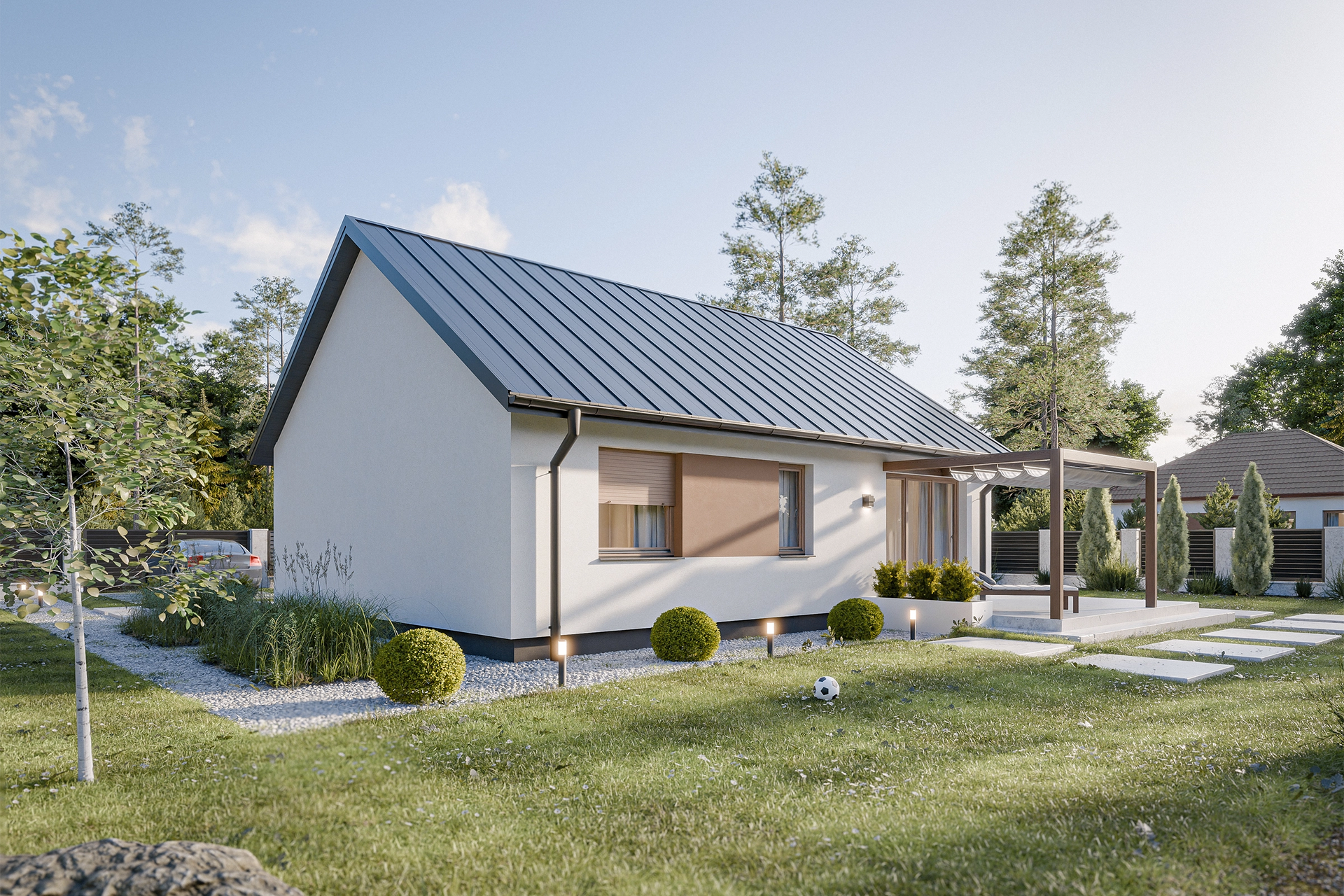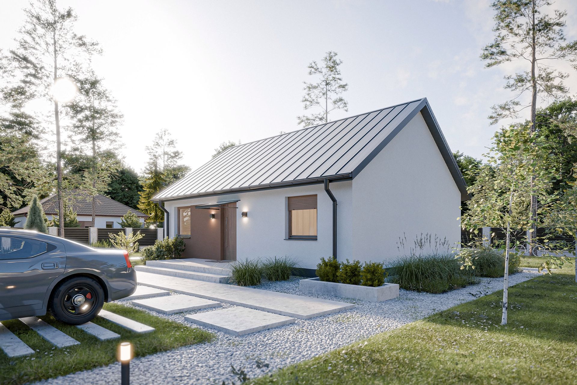 Wybierając dom Parterowy 70 zamiast mieszkania, zyskujesz optymalną przestrzeń do życia i wiele więcej - ogród, niezależność, prywatność. To propozycja dla niedużej 2- lub 3-osobowej rodziny.