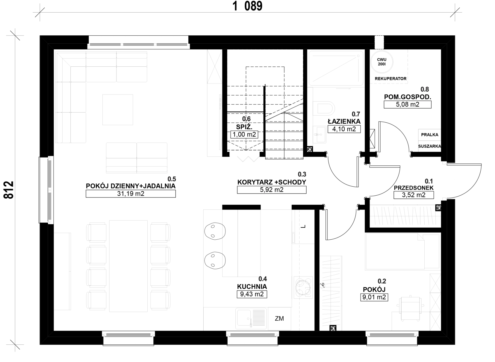 Domy serii Piętrowy 130 to wygodne rozwiązania o optymalnym metrażu, które sprawdzą się w przypadku mniejszych działek. Klasyczny podział strefy dziennej i nocnej pomiędzy dwie kondygnacje, to nie tylko wygoda, ale szansa na prywatność, kiedy zjawią się goście.