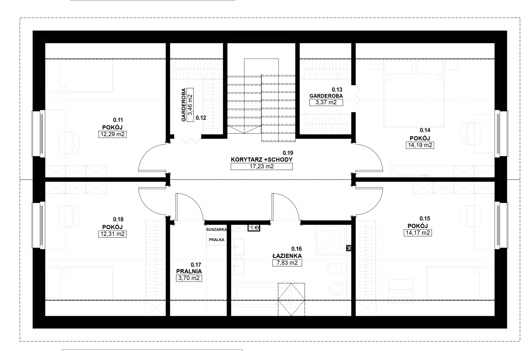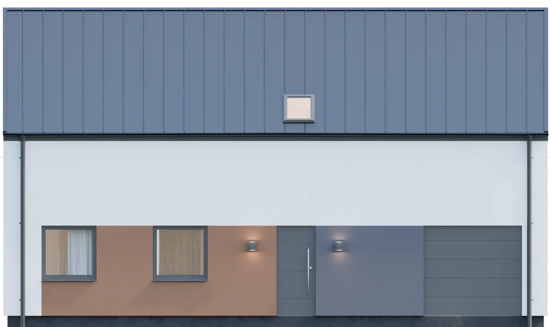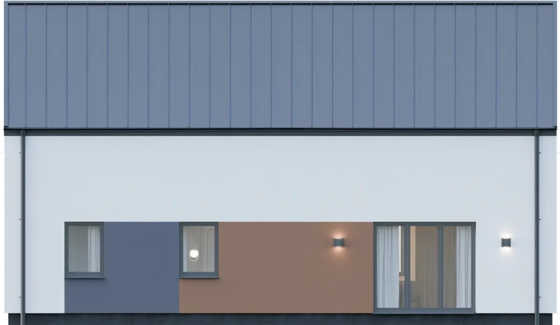 Graficzne opracowanie rzutów poglądowych widocznych na karcie projektu zostało wykonane przez Extradom.pl. Prezentowane przez Extradom.pl wizualizacje wykonane zostały przez autora projektu i należy poczytywać je jedynie za przykład i propozycję wykończenia, wizję architektoniczną autora projektu. Ostateczne wykończenie budynku może nastąpić na wiele sposobów. Szczegółowe rozwiązania zastosowane w oferowanej dokumentacji - w tym również ilość, lokalizacje i wygląd okien, drzwi, kominów - mogą w niewielkim stopniu różnić się od prezentowanej wizualizacji budynku.