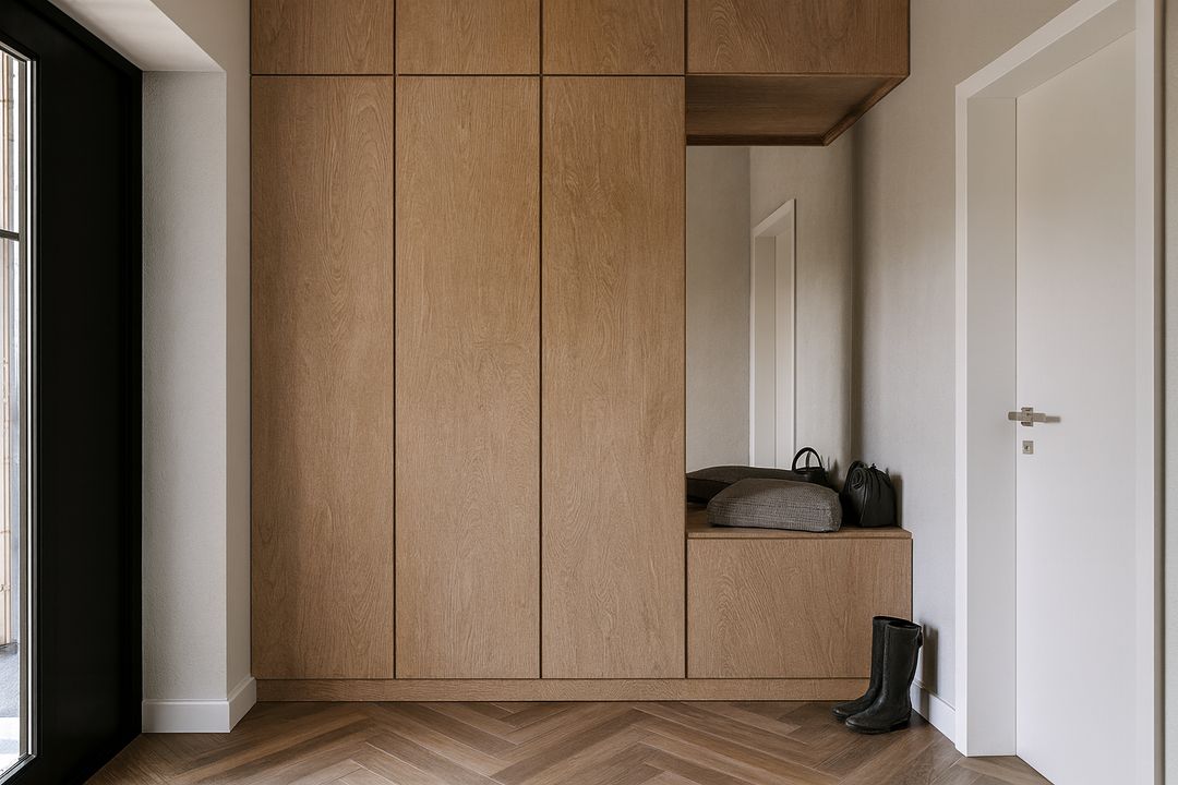 W domu znajdziemy wiele miejsc do przechowywania - spiżarnię przy kuchni, 2 garderoby przy wiatrołapie i w głównej sypialni.