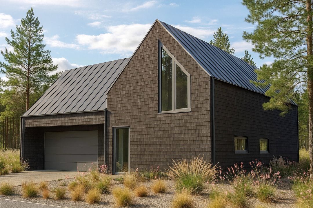 drewno konstrukcyjne C24, wełna mineralna 20cm-25cm, deska elewacyjna