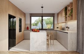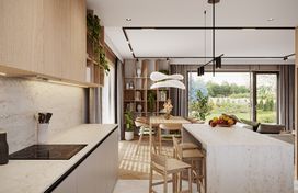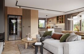 Strefa dzienna z otwartą kuchnią i otwartą strefą wejściową