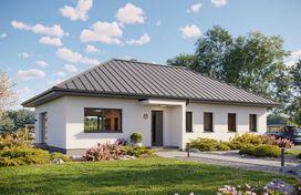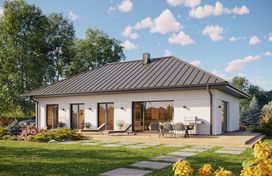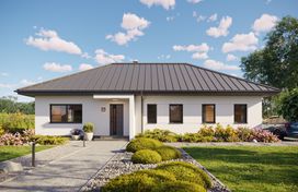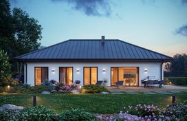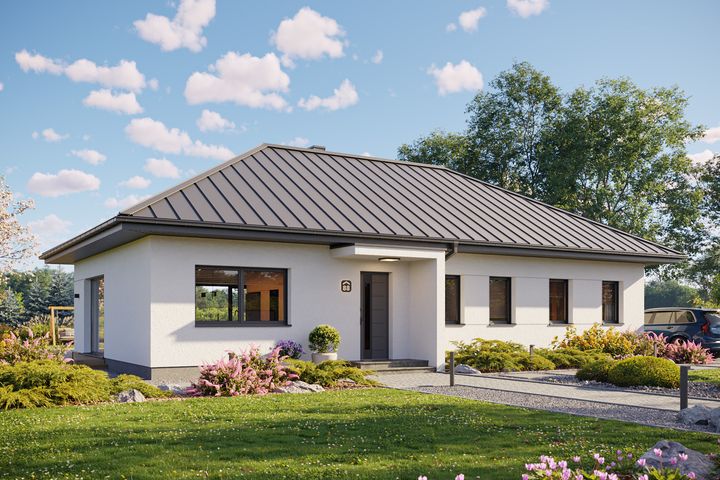 Bergen 130 to gotowy dom parterowy z czterospadowym dachem i prostą bryłą na planie prostokąta, która doskonale wpisze się w większość średnich działek, nawet tych węższych.
