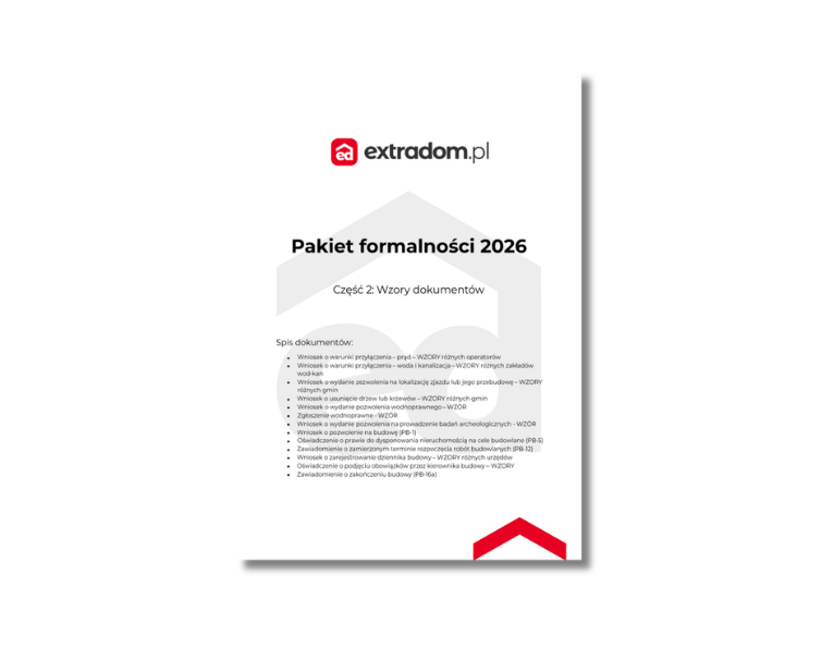Oszczędzisz dziesiątki godzin! W pakiecie znajdziesz gotowe do wypełnienia wzory pism, listy kontrolne od zakupu projektu aż po przeprowadzkę oraz praktyczną wiedzę ekspertów, która przyspieszy uzyskanie pozwolenia na budowę.