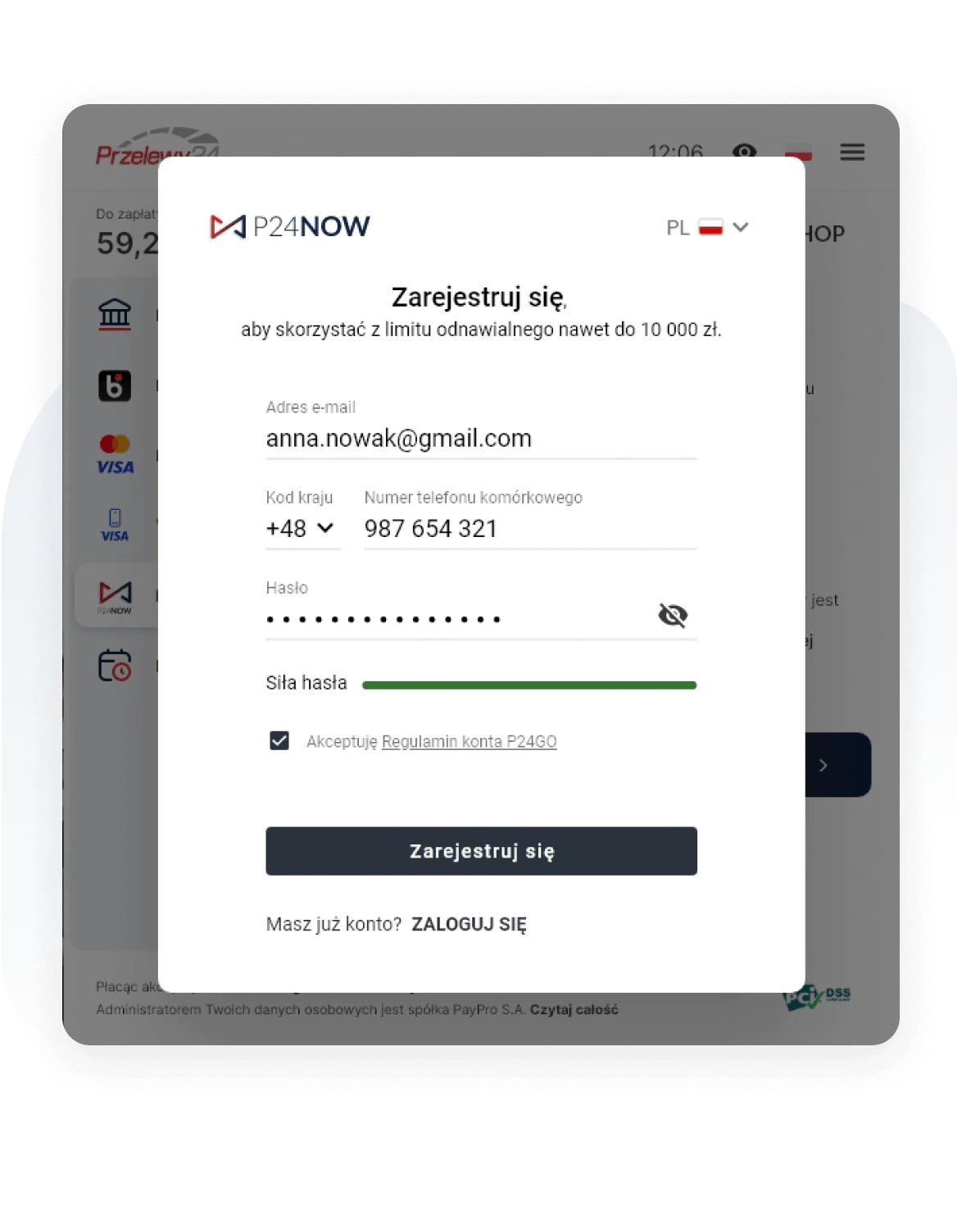 2.Utwórz konto w P24NOW
