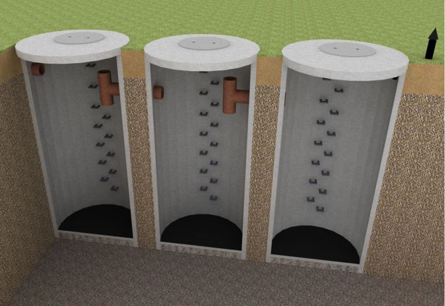 Kubatura 9,00 m3. Ilość komór 3 szt. Wysokość obiektu 3,165 m. Długość obiektu 4,60 m. Średnica komory 1,20 m.