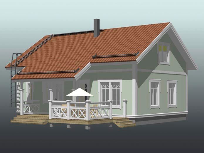 Dom modułowy w konstrukcji drewnianej. Fundamenty – betonowe. Ściany konstrukcyjne – opatentowana konstrukcja drewniano-płytowa, ocieplenie wełną mineralną o grubości 270 mm; współczynnik przenikalności cieplnej U=0,15. Elewacje – standardowo drewniane (deska elewacyjna) w układzie pionowym lub poziomym, istnieje możliwość wykonania elewacji pokrytej tynkiem strukturalnym. Ścianki działowe - konstrukcja drewniana wykończona płytą gipsowo-kartonową, wewnątrz możliwe wypełnienie dźwiękochłonne. Konstrukcja dachu – drewniana, kratownicowa, pozwalająca na zastosowanie wszystkich rodzajów pokryć dachowych. Strop drewniany. W standardzie drewniane okna skrzynkowe z szybą zespoloną wypełnioną argonem; współczynnik przenikalności U=0,95. Roczne zapotrzebowanie na energię: 21 kWh/m².