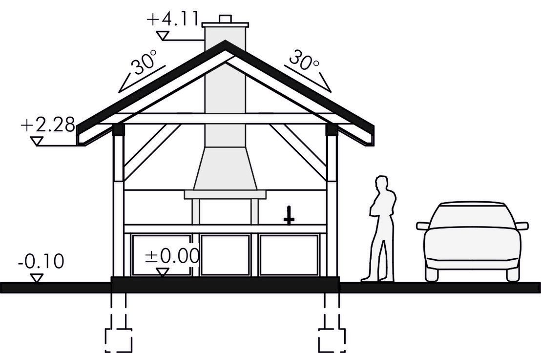 Graficzne opracowanie rzutów poglądowych widocznych na karcie projektu zostało wykonane przez Extradom.pl. Prezentowane przez Extradom.pl wizualizacje wykonane zostały przez autora projektu i należy poczytywać je jedynie za przykład i propozycję wykończenia, wizję architektoniczną autora projektu. Ostateczne wykończenie budynku może nastąpić na wiele sposobów. Szczegółowe rozwiązania zastosowane w oferowanej dokumentacji - w tym również ilość, lokalizacje i wygląd okien, drzwi, kominów - mogą w niewielkim stopniu różnić się od prezentowanej wizualizacji budynku.