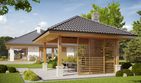 Graficzne opracowanie rzutów poglądowych widocznych na karcie projektu zostało wykonane przez Extradom.pl. Prezentowane przez Extradom.pl wizualizacje wykonane zostały przez autora projektu i należy poczytywać je jedynie za przykład i propozycję wykończenia, wizję architektoniczną autora projektu. Ostateczne wykończenie budynku może nastąpić na wiele sposobów. Szczegółowe rozwiązania zastosowane w oferowanej dokumentacji - w tym również ilość, lokalizacje i wygląd okien, drzwi, kominów - mogą w niewielkim stopniu różnić się od prezentowanej wizualizacji budynku.