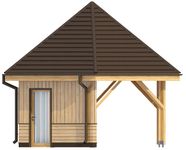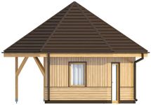 Ściany zewnętrzne: szkielet drewniany. Konstrukcja dachu: drewniana krokwie. Pokrycie dachu: blachodachówka. Elewacja: drewno.
