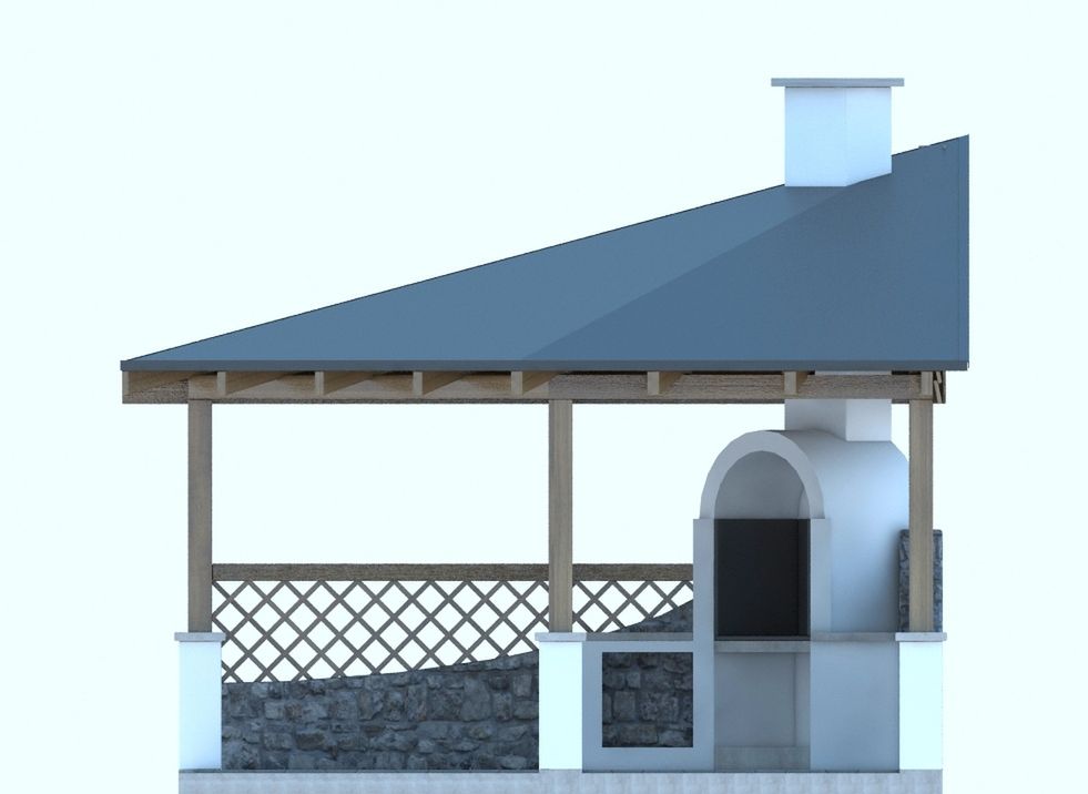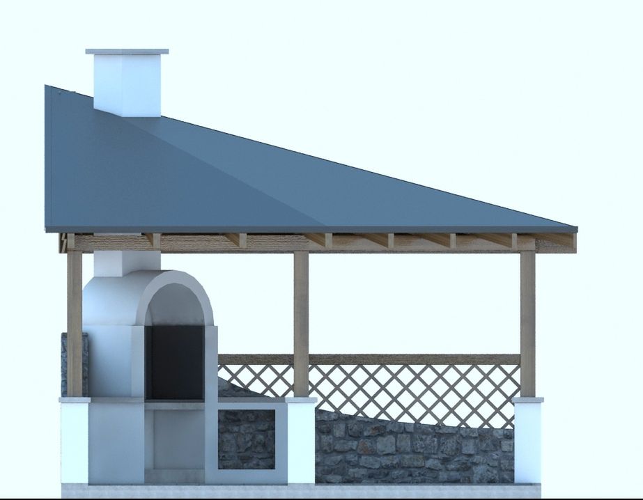 Projekt altany ogrodowej z grillem. Do projektu dołączone jest zestawienie: podstawowych materiałów konstrukcyjnych i więźby dachowej, jak również bezpłatna zgoda na dokonanie zmian.
