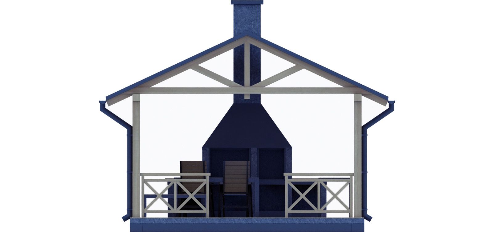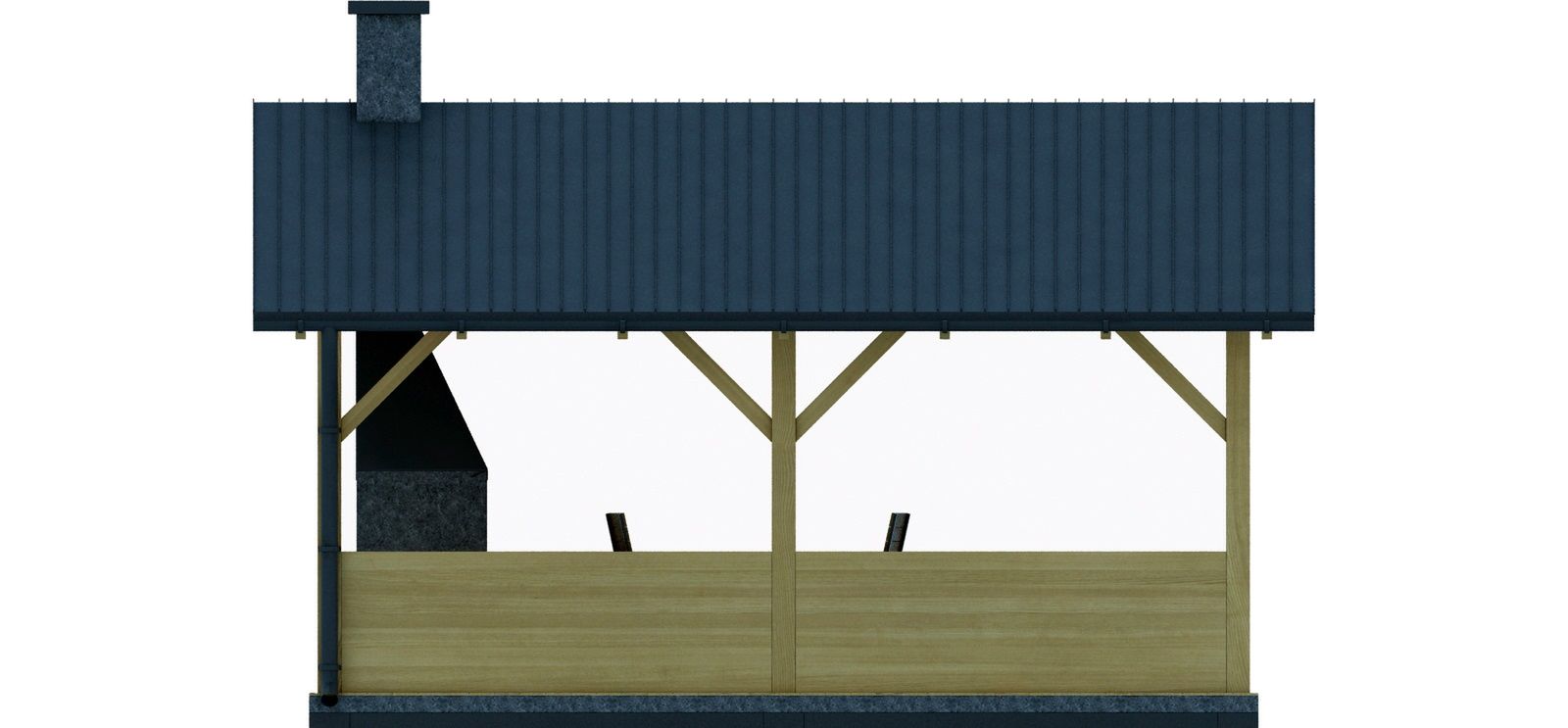 Budynek konstrukcji drewnianej. Grill z cegły ceramicznej pełnej. Więźba dachowa dwuspadowa, drewniana, pokryta blachodachówką.