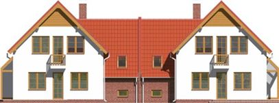 Graficzne opracowanie rzutów poglądowych widocznych na karcie projektu zostało wykonane przez Extradom.pl. Prezentowane przez Extradom.pl wizualizacje wykonane zostały przez autora projektu i należy poczytywać je jedynie za przykład i propozycję wykończenia, wizję architektoniczną autora projektu. Ostateczne wykończenie budynku może nastąpić na wiele sposobów. Szczegółowe rozwiązania zastosowane w oferowanej dokumentacji - w tym również ilość, lokalizacje i wygląd okien, drzwi, kominów - mogą w niewielkim stopniu różnić się od prezentowanej wizualizacji budynku.
