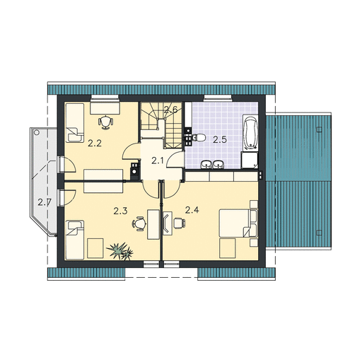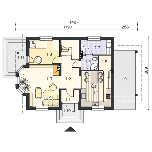 Graficzne opracowanie rzutów poglądowych widocznych na karcie projektu zostało wykonane przez Extradom.pl. Prezentowane przez Extradom.pl wizualizacje wykonane zostały przez autora projektu i należy poczytywać je jedynie za przykład i propozycję wykończenia, wizję architektoniczną autora projektu. Ostateczne wykończenie budynku może nastąpić na wiele sposobów. Szczegółowe rozwiązania zastosowane w oferowanej dokumentacji - w tym również ilość, lokalizacje i wygląd okien, drzwi, kominów - mogą w niewielkim stopniu różnić się od prezentowanej wizualizacji budynku.
