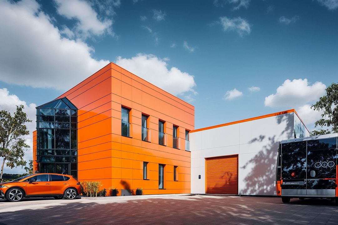 Budynek wykonany w technologii tradycyjnej. Ściany warstwowe magazynu grubości 39cm, murowane z bloczków z betonu komórkowego grubości 24cm, ocieplone styropianem grubości 15cm, biura grubości 49cm, murowane z bloczków z betonu komórkowego grubości 24cm, ocieplone wełną mineralną grubości 20cm i osłonięte systemem fasadowym. Ściany