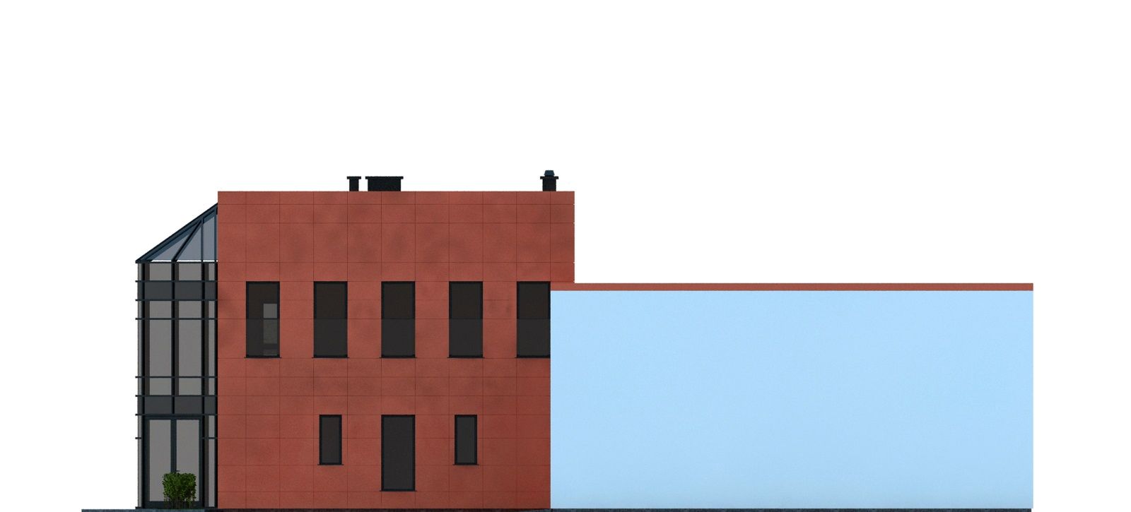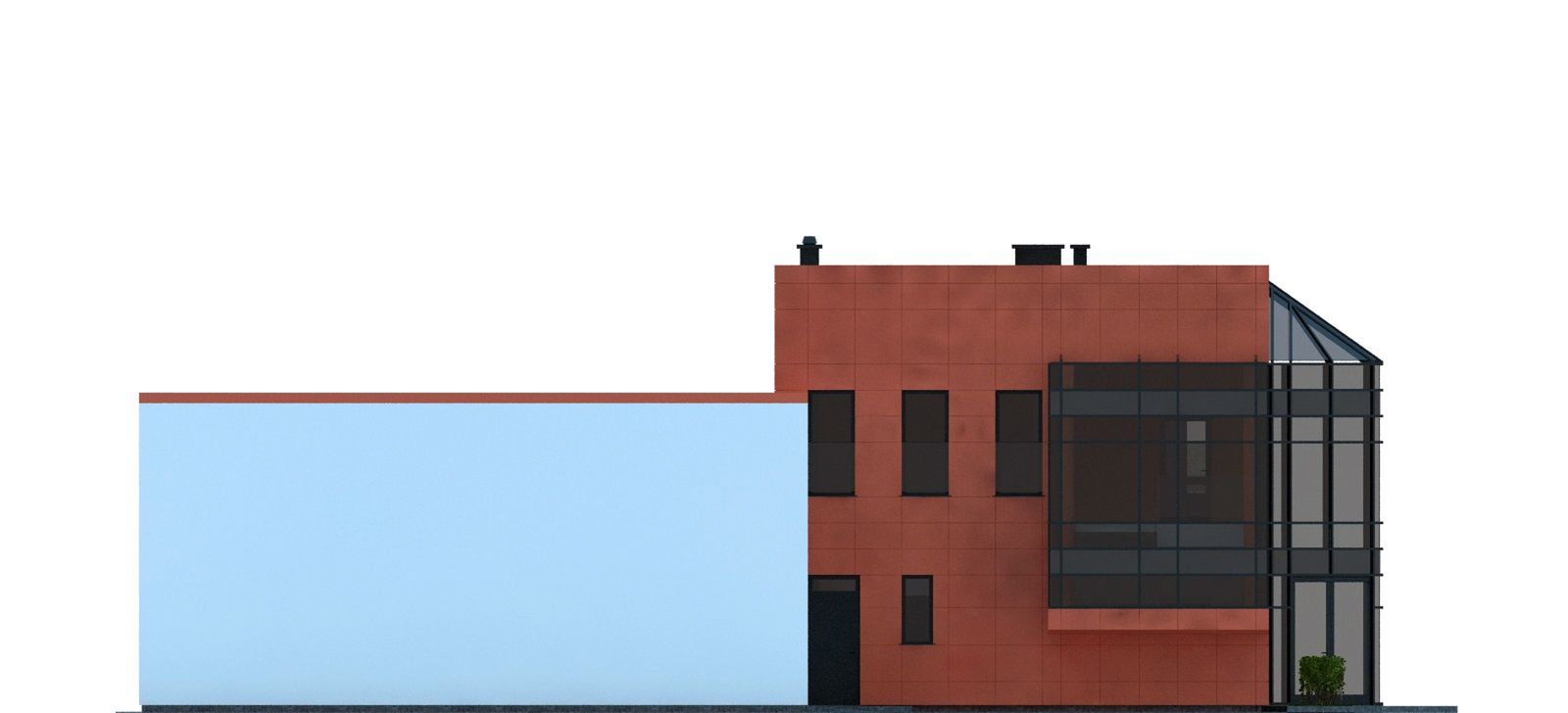 Graficzne opracowanie rzutów poglądowych widocznych na karcie projektu zostało wykonane przez Extradom.pl. Prezentowane przez Extradom.pl wizualizacje wykonane zostały przez autora projektu i należy poczytywać je jedynie za przykład i propozycję wykończenia, wizję architektoniczną autora projektu. Ostateczne wykończenie budynku może nastąpić na wiele sposobów. Szczegółowe rozwiązania zastosowane w oferowanej dokumentacji - w tym również ilość, lokalizacje i wygląd okien, drzwi, kominów - mogą w niewielkim stopniu różnić się od prezentowanej wizualizacji budynku.