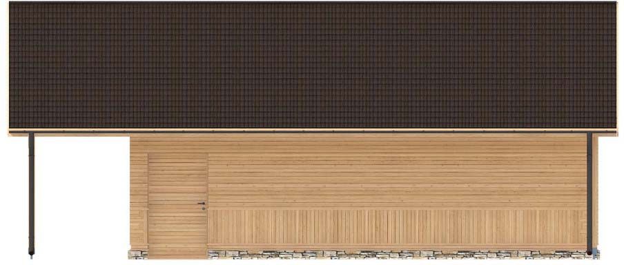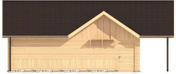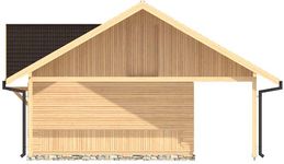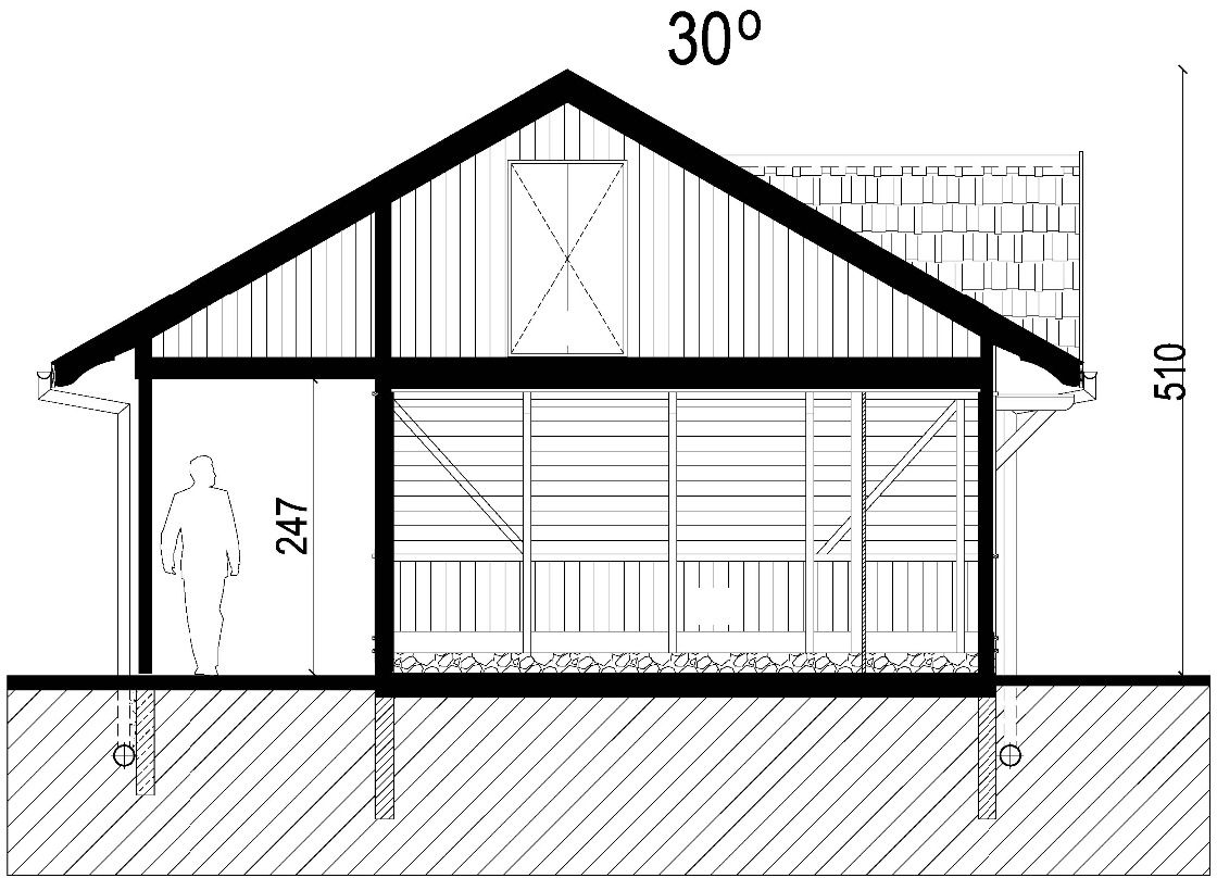 Ściany zewnętrzne: szkielet drewniany. Konstrukcja dachu: drewniana krokwie. Pokrycie dachu: blachodachówka. Elewacja: drewno.