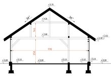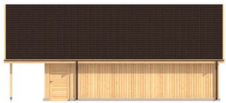 Ściany zewnętrzne: szkielet drewniany. Konstrukcja dachu: drewniana krokwie. Pokrycie dachu: blachodachówka. Elewacja: drewno.