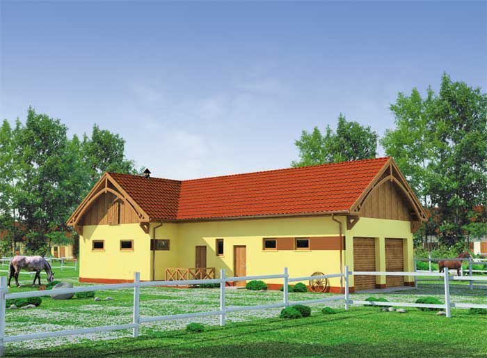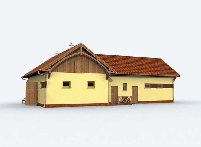 wymiary bram: 2,5x2,5 m i 2,4x2,4 m- ściany zewnętrzne murowane grubości 25 cm- ściany wewnętrzne działowe murowane grubości 11,5 cm- wszystkie ściany wykonane z pustaków ceramicznych "POROTHERM" - dach główny wielospadowy o kącie 35°- dach pokryty dachówką ceramiczną - konstrukcja dachu wiązary drewniane- pow. dachu głównego: 210 m2 - w łazience zastosowano przepływowy podgrzewacz wody umywalkowo natryskowy.