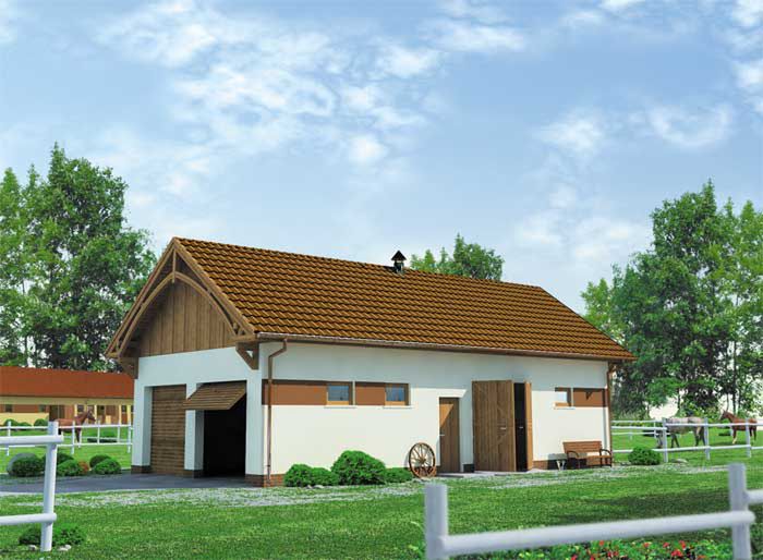 Technologia tradycyjna : - wymiary bram 2,5x2,5m i 2,4x2,4m- ściany zewnętrzne murowane grubości 25 cm- wszystkie ściany wykonane z pustaków ceramicznych "POROTHERM" - dach główny dwuspadowy o kącie 35°- dach pokryty dachówką ceramiczną - konstrukcja dachu wiązary drewniane- pow. dachu : 139m2 - w łazience zastosowano przepływowy podgrzewacz wody umywalkowo natryskowy
