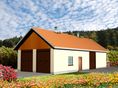 Graficzne opracowanie rzutów poglądowych widocznych na karcie projektu zostało wykonane przez Extradom.pl. Prezentowane przez Extradom.pl wizualizacje wykonane zostały przez autora projektu i należy poczytywać je jedynie za przykład i propozycję wykończenia, wizję architektoniczną autora projektu. Ostateczne wykończenie budynku może nastąpić na wiele sposobów. Szczegółowe rozwiązania zastosowane w oferowanej dokumentacji - w tym również ilość, lokalizacje i wygląd okien, drzwi, kominów - mogą w niewielkim stopniu różnić się od prezentowanej wizualizacji budynku.