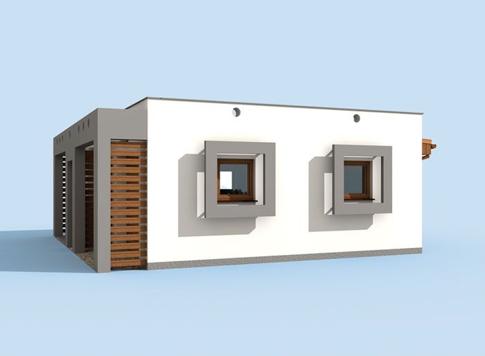 Graficzne opracowanie rzutów poglądowych widocznych na karcie projektu zostało wykonane przez Extradom.pl. Prezentowane przez Extradom.pl wizualizacje wykonane zostały przez autora projektu i należy poczytywać je jedynie za przykład i propozycję wykończenia, wizję architektoniczną autora projektu. Ostateczne wykończenie budynku może nastąpić na wiele sposobów. Szczegółowe rozwiązania zastosowane w oferowanej dokumentacji - w tym również ilość, lokalizacje i wygląd okien, drzwi, kominów - mogą w niewielkim stopniu różnić się od prezentowanej wizualizacji budynku.