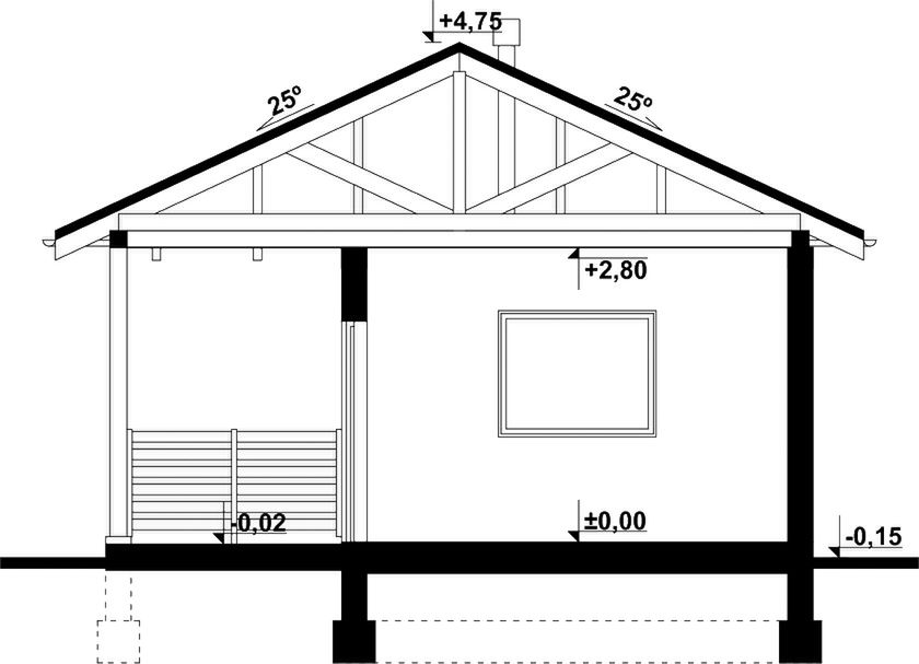 Graficzne opracowanie rzutów poglądowych widocznych na karcie projektu zostało wykonane przez Extradom.pl. Prezentowane przez Extradom.pl wizualizacje wykonane zostały przez autora projektu i należy poczytywać je jedynie za przykład i propozycję wykończenia, wizję architektoniczną autora projektu. Ostateczne wykończenie budynku może nastąpić na wiele sposobów. Szczegółowe rozwiązania zastosowane w oferowanej dokumentacji - w tym również ilość, lokalizacje i wygląd okien, drzwi, kominów - mogą w niewielkim stopniu różnić się od prezentowanej wizualizacji budynku.