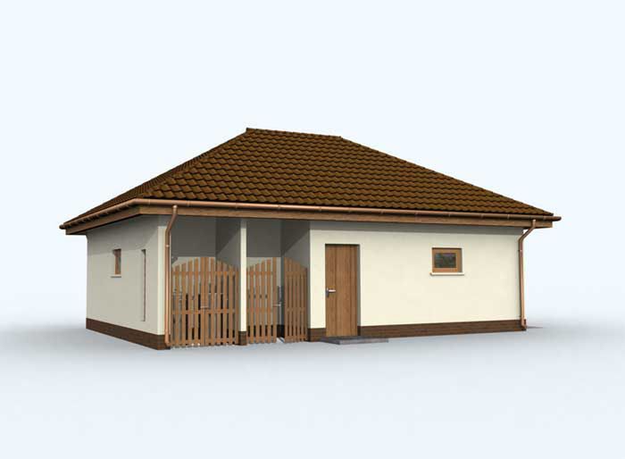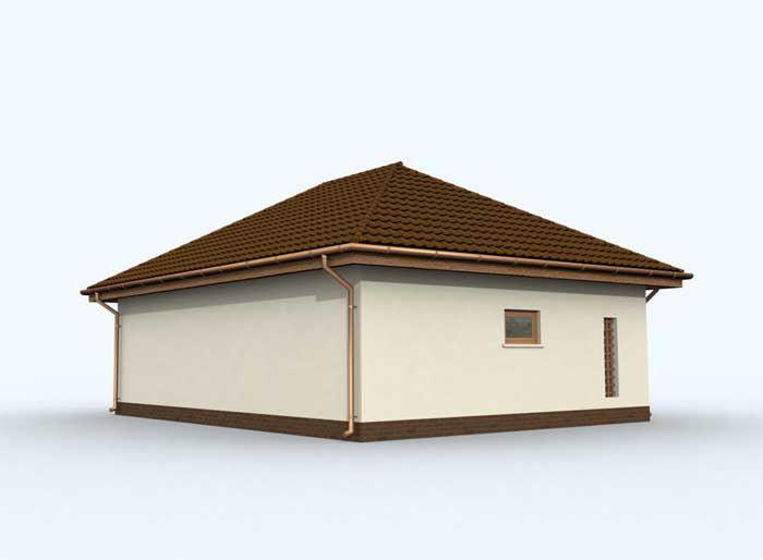 Technologia tradycyjna: ściany zewnętrzne nośne murowane grubości 25 cm, wszystkie ściany wykonane z pustaków ceramicznych "POROTHERM", dach czterospadowy 30°, więźba dachowa drewniana, pokrycie dachu dachówka ceramiczna, wymiar bramy garażowej 2,4x2,4 m.