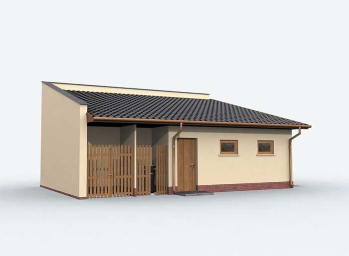 Graficzne opracowanie rzutów poglądowych widocznych na karcie projektu zostało wykonane przez Extradom.pl. Prezentowane przez Extradom.pl wizualizacje wykonane zostały przez autora projektu i należy poczytywać je jedynie za przykład i propozycję wykończenia, wizję architektoniczną autora projektu. Ostateczne wykończenie budynku może nastąpić na wiele sposobów. Szczegółowe rozwiązania zastosowane w oferowanej dokumentacji - w tym również ilość, lokalizacje i wygląd okien, drzwi, kominów - mogą w niewielkim stopniu różnić się od prezentowanej wizualizacji budynku.