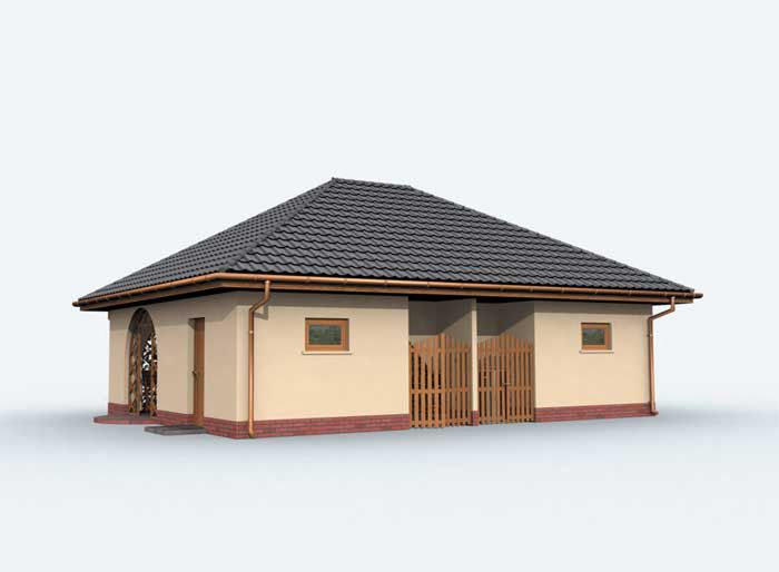 Graficzne opracowanie rzutów poglądowych widocznych na karcie projektu zostało wykonane przez Extradom.pl. Prezentowane przez Extradom.pl wizualizacje wykonane zostały przez autora projektu i należy poczytywać je jedynie za przykład i propozycję wykończenia, wizję architektoniczną autora projektu. Ostateczne wykończenie budynku może nastąpić na wiele sposobów. Szczegółowe rozwiązania zastosowane w oferowanej dokumentacji - w tym również ilość, lokalizacje i wygląd okien, drzwi, kominów - mogą w niewielkim stopniu różnić się od prezentowanej wizualizacji budynku.