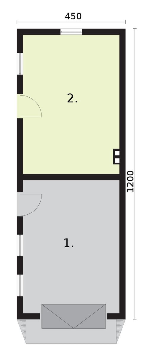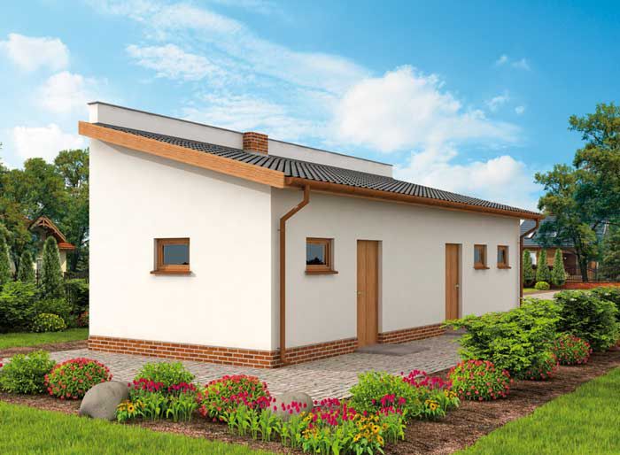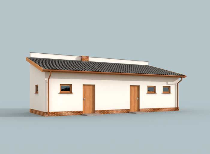 Technologia tradycyjna :- powierzchnia użytkowa -44,83m2 - powierzchnia zabudowy -54,00m2 - powierzchnia całkowita -54,00m2 - kubatura - 212,00m3 - ściany zewnętrzne nośne murowane grubości 25cm - wszystkie ściany wykonane pustaków ceramicznych "POROTHERM" - wysokość budynku 4,84m - dach jednospadowy 15° - więźba dachowa drewniana - pokrycie dachu dachówka ceramiczna - wymiar bramy garażowej 2,8x2,4m