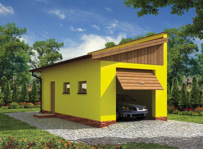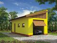 Technologia tradycyjna: więźba dachowa drewniana, pokrycie dachu blachodachówka, wymiar bramy garażowej 2,4x2,4m.