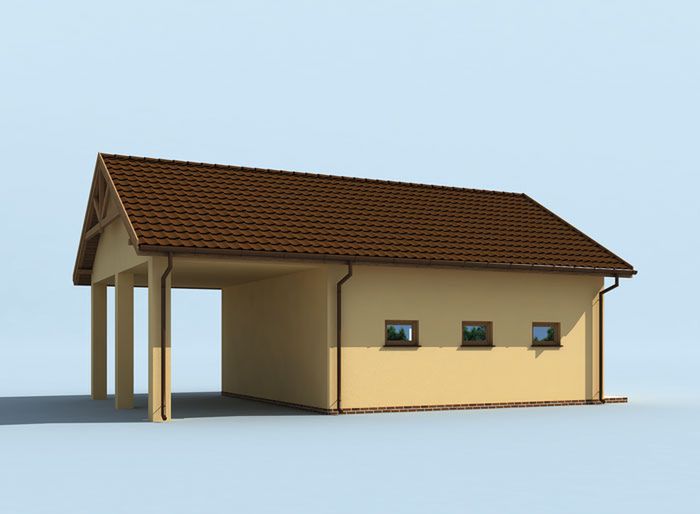 Technologia tradycyjna. Ściany zewnętrzne nośne murowane grubości 25 cm. Wszystkie ściany wykonane pustaków ceramicznych "POROTHERM". Więźba dachowa drewniana. Pokrycie dachu dachówka ceramiczna. Wymiar bramy garażowej 3,0x3,0 m.