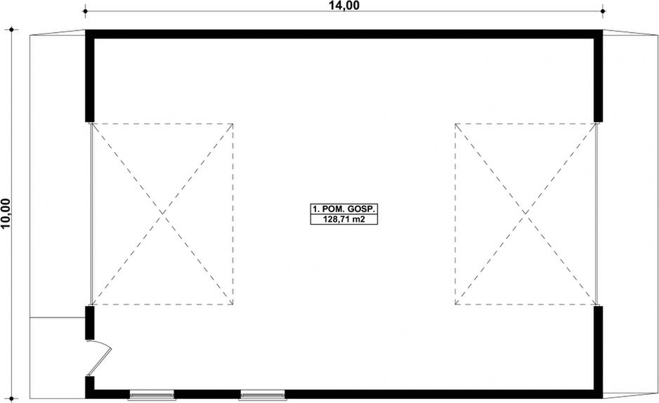 Budynek wykonany w technologii tradycyjnej. Ściany murowane z bloczków z betonu komórkowego grubości 24cm. Brama o wymiarach 5,00×3,80m. Więźba dachowa dwuspadowa, drewniana, pokryta blachą trapezową.